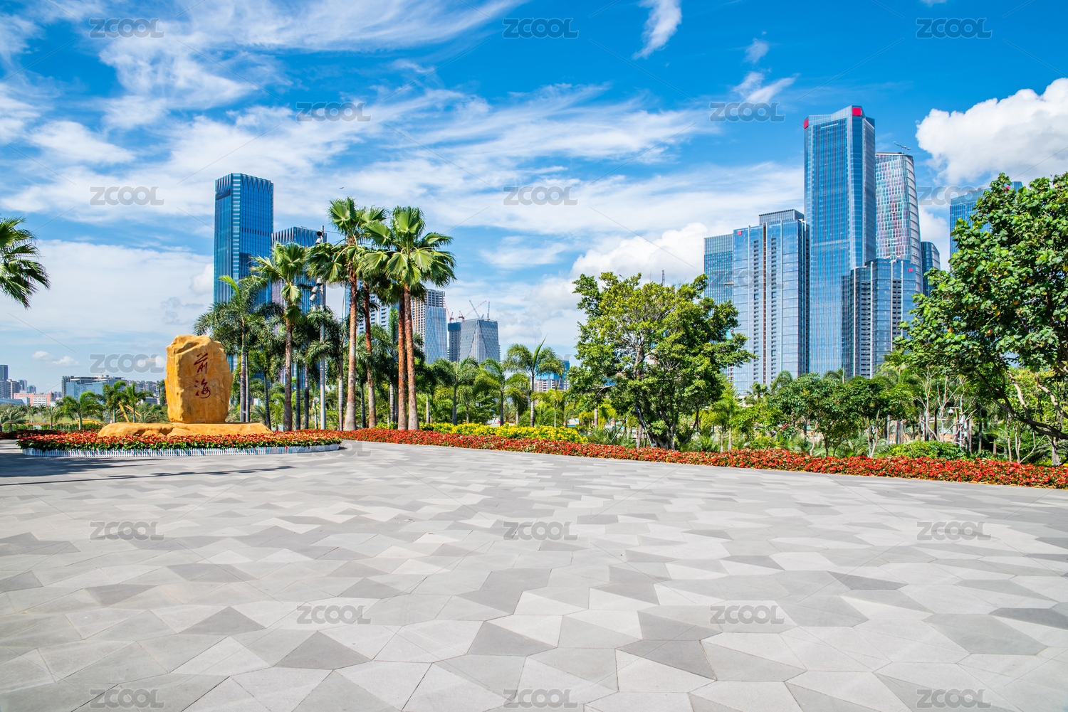 中国广东深圳前海石公园及城市高楼大厦