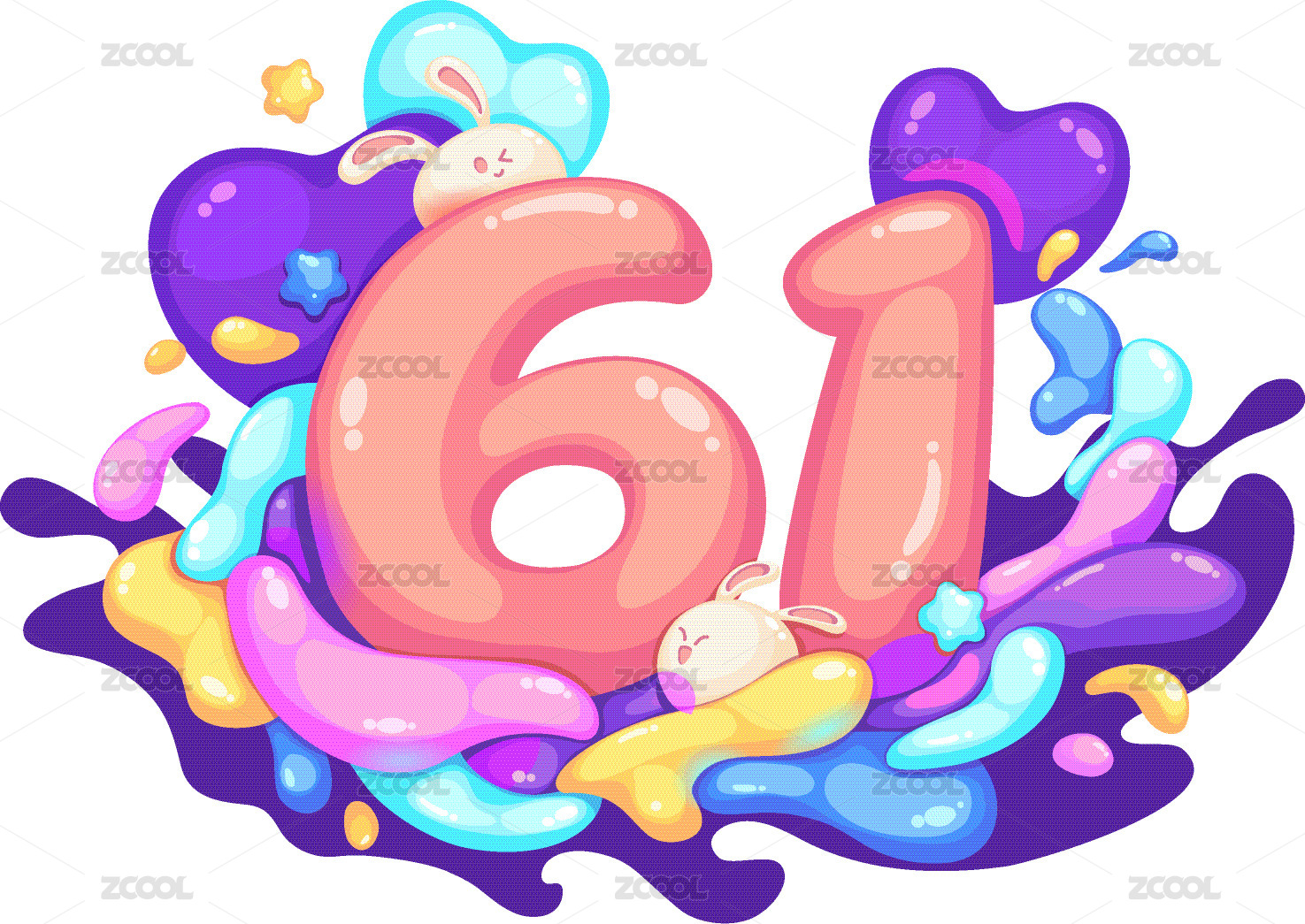 卡通字体六一儿童节矢量插画