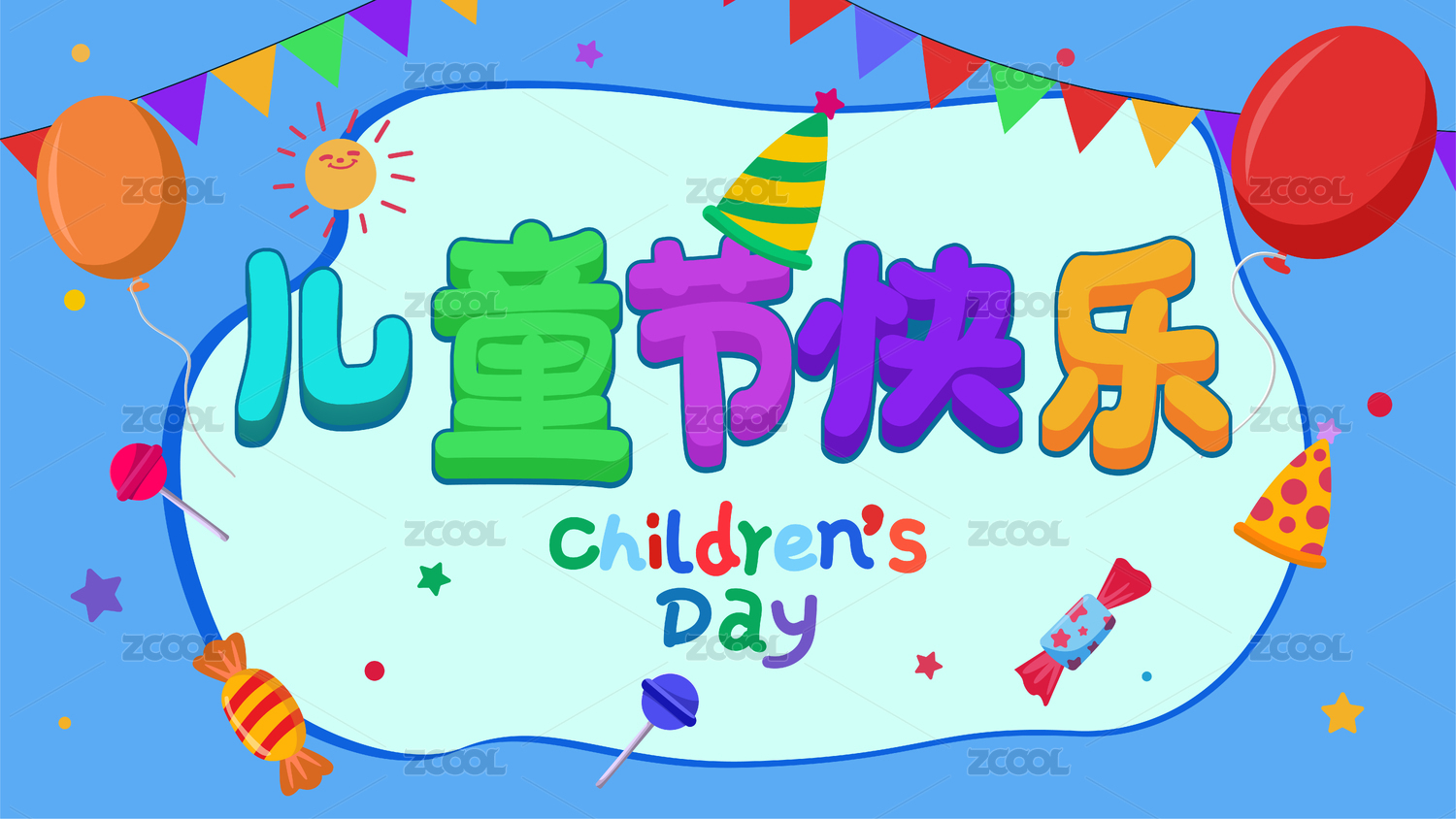 可爱儿童节快乐立体卡通字插画