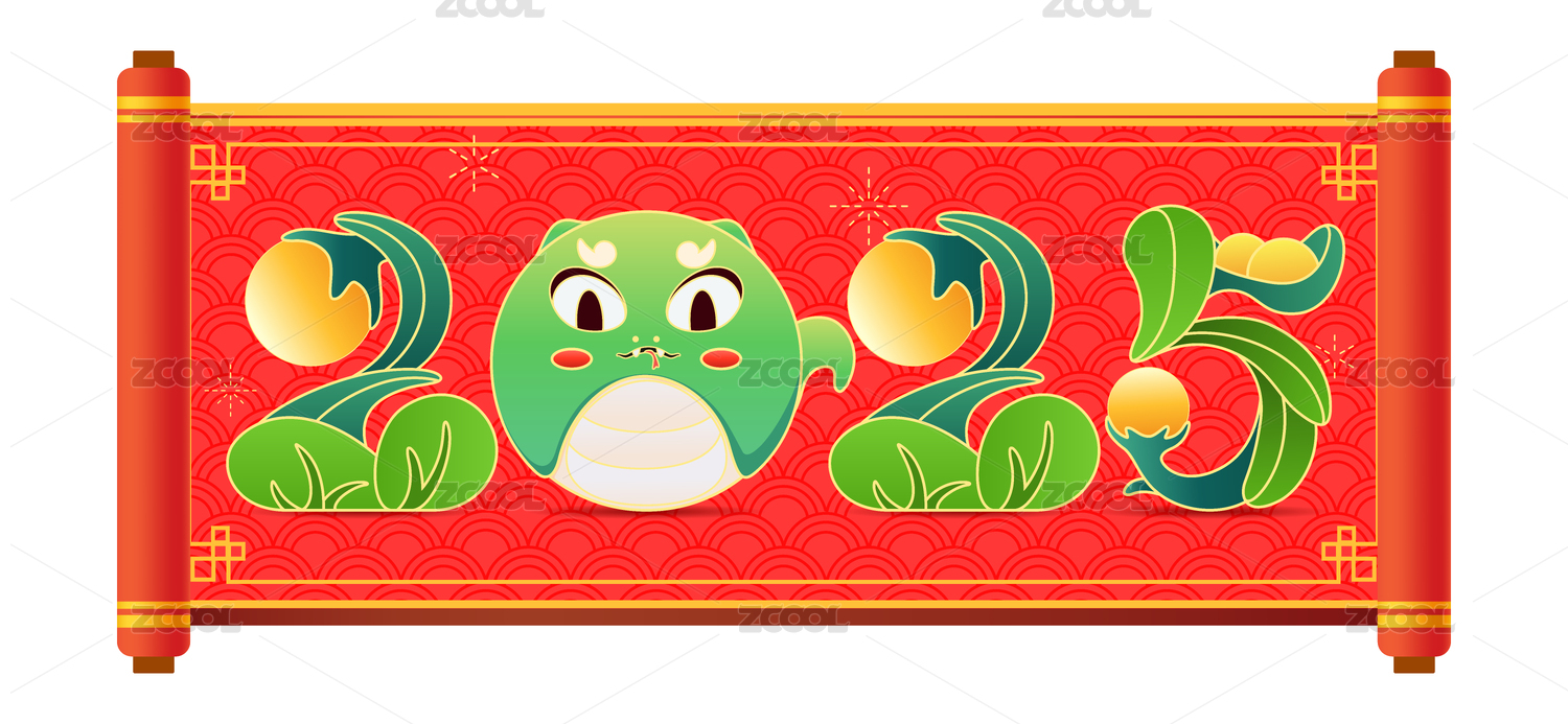 2025年蛇年卡通字体矢量插画素材