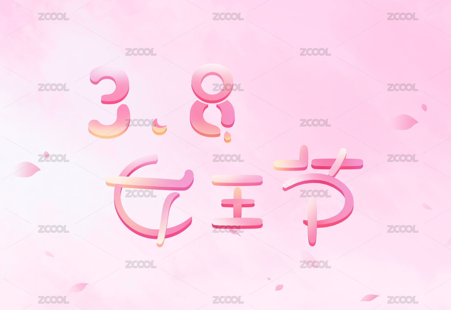 三八妇女节女王节卡通字体 搭配粉色背景