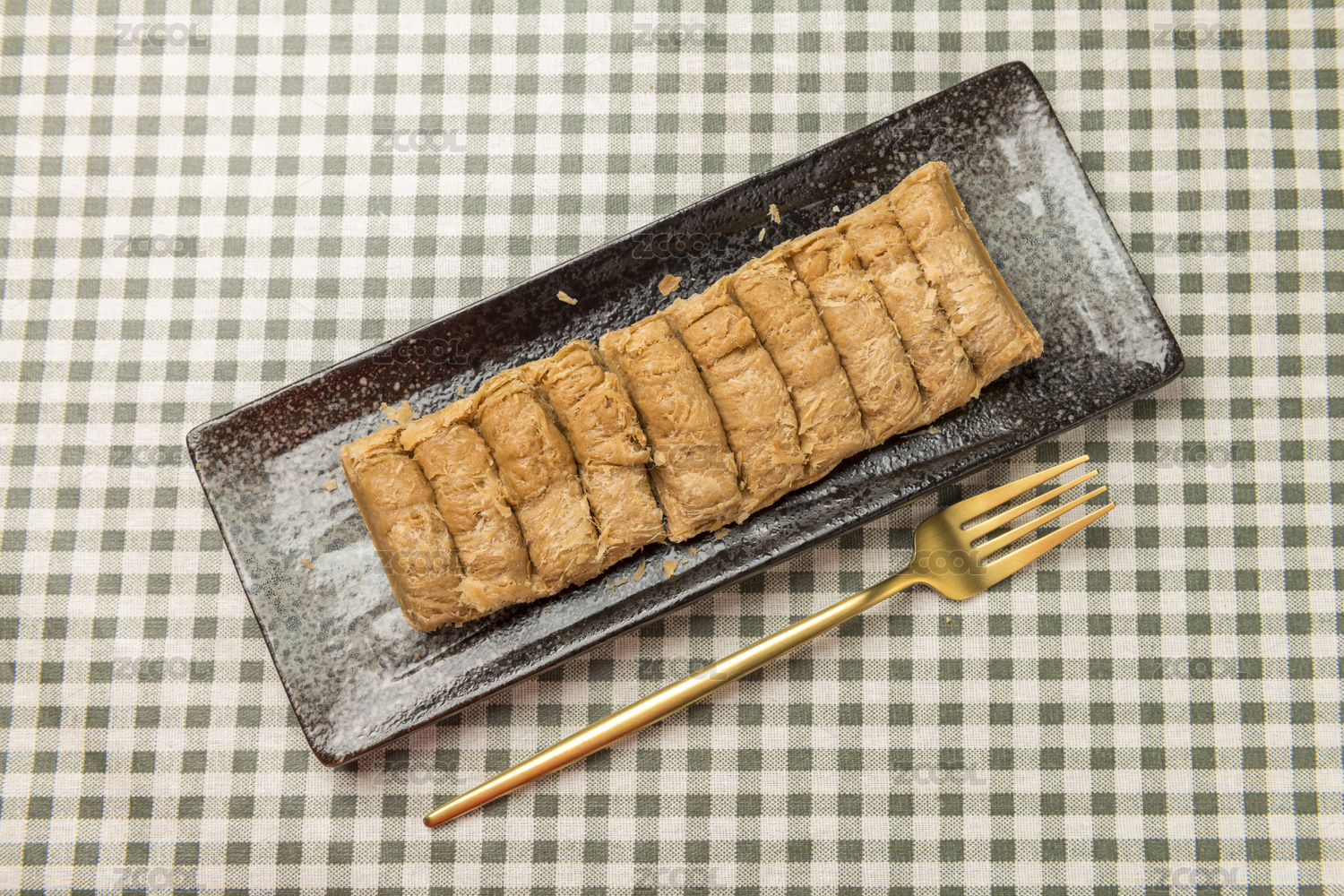 一盘花生酥糖摆放在桌面上特写