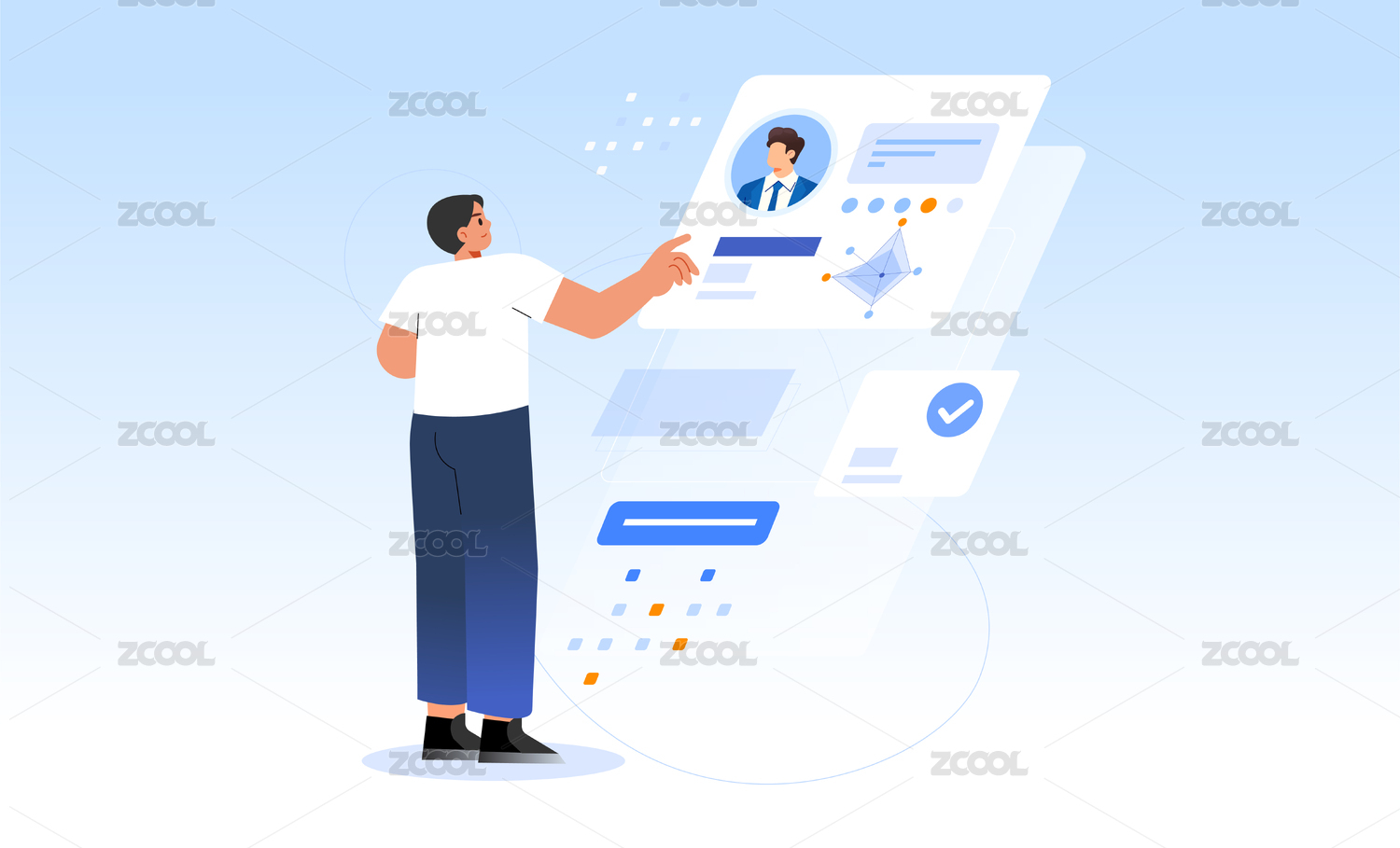 面试求职的男生,扁平矢量人物场景创意概念插画