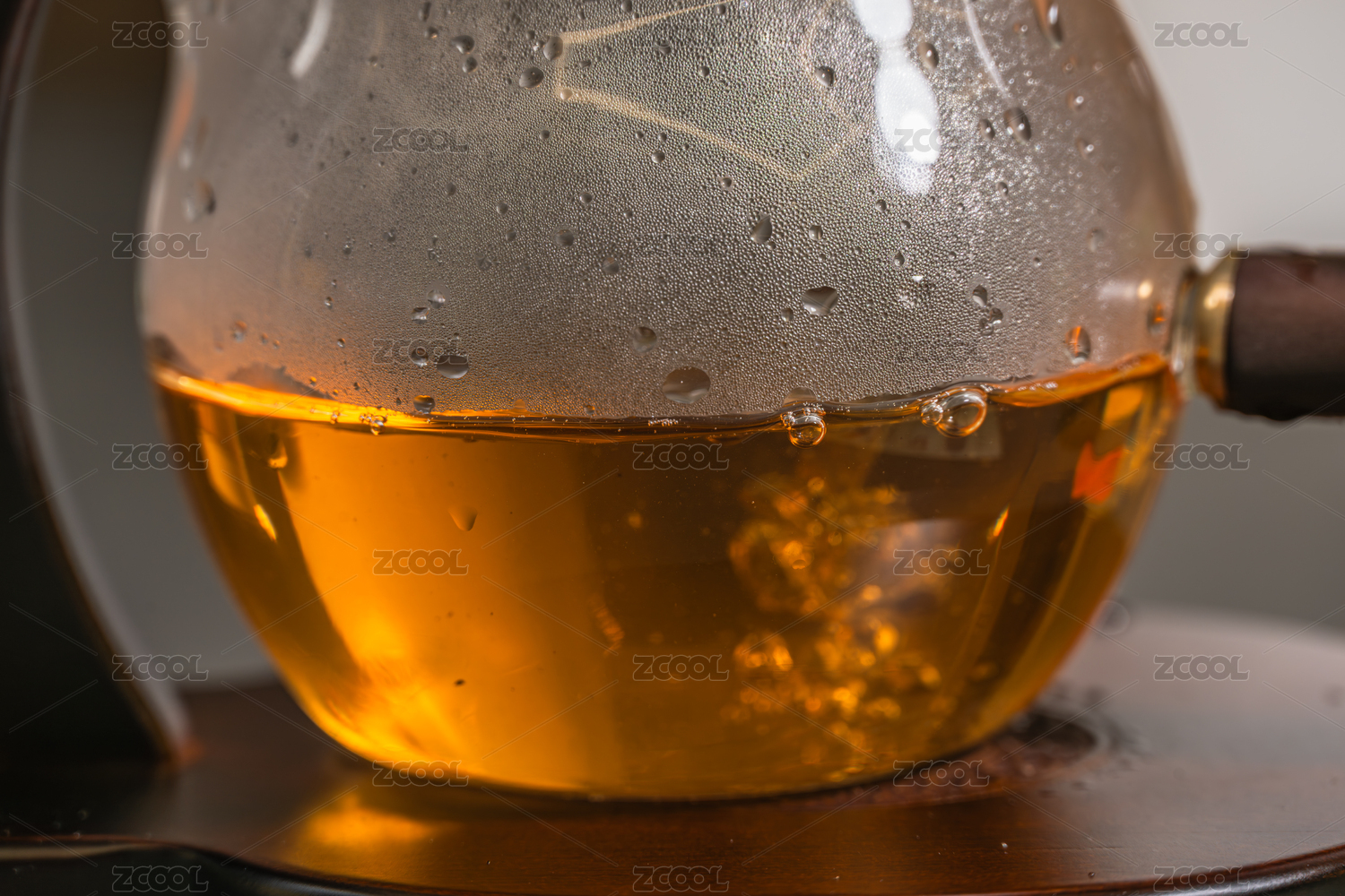 玻璃壶中正在加热的金黄色液体