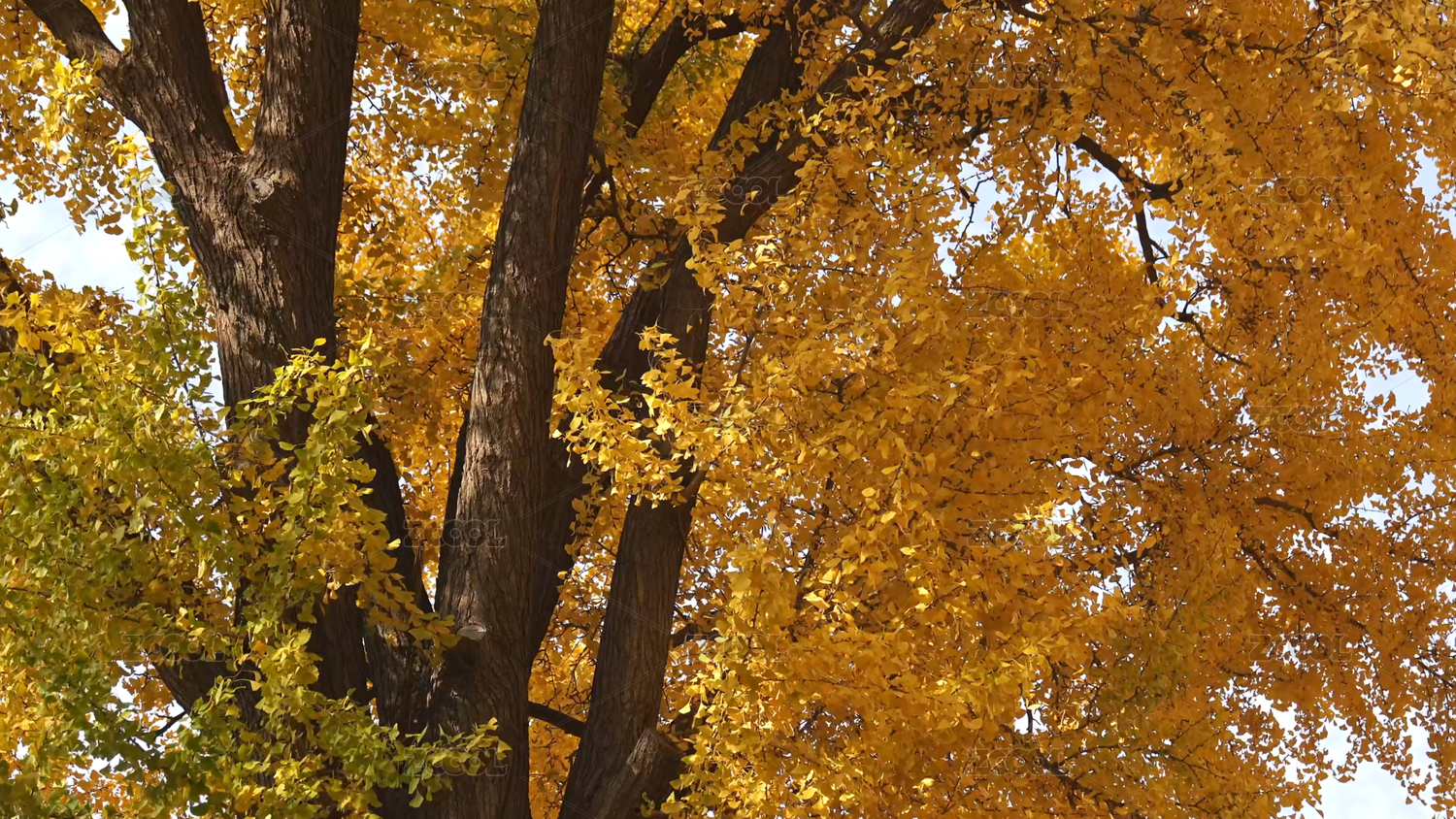 金黄树叶繁茂的银杏树