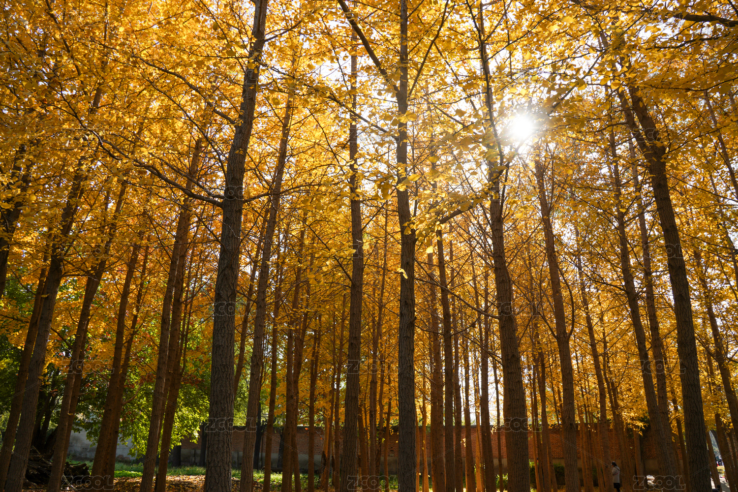 秋日金黄银杏树林