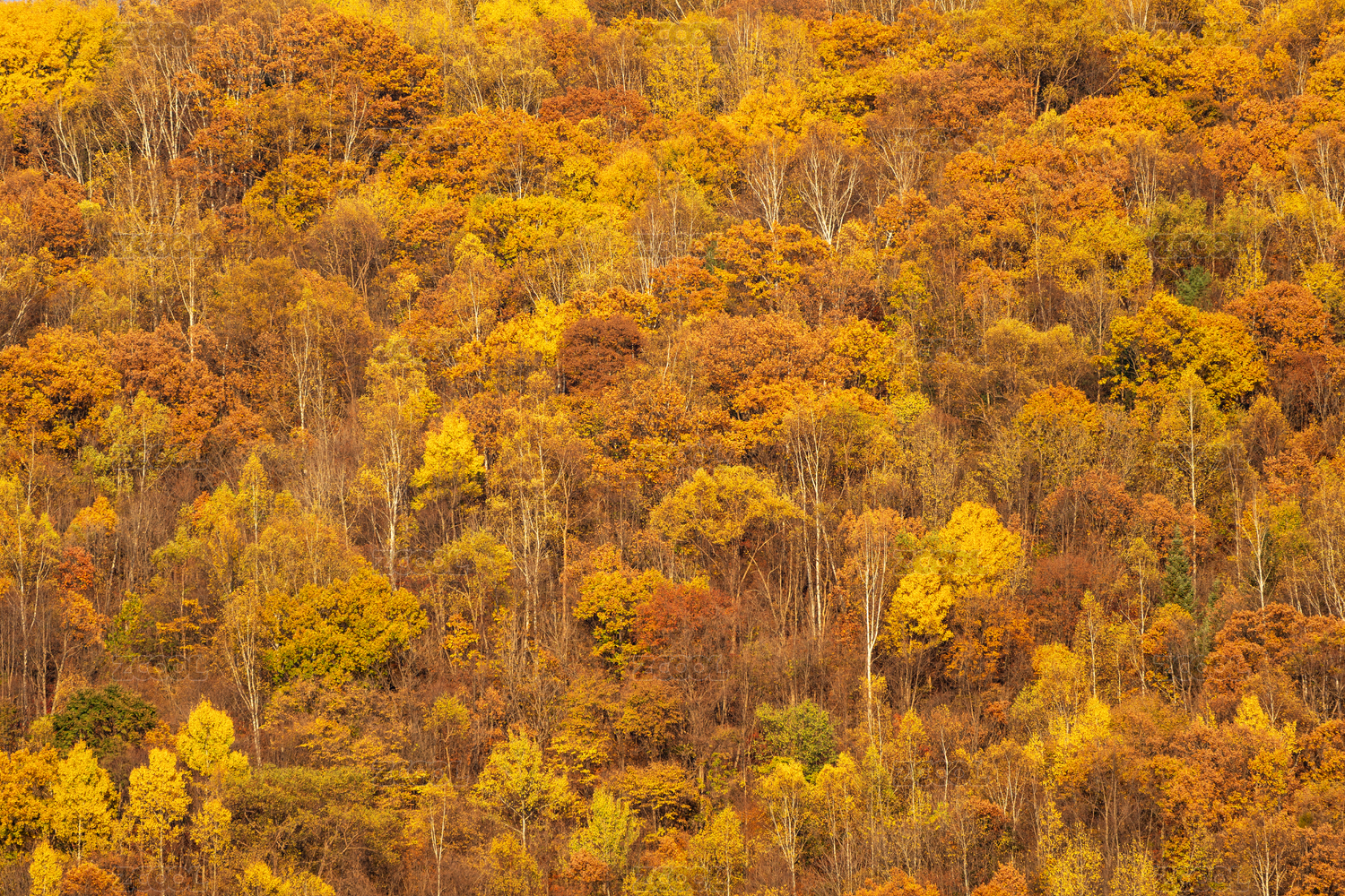 金秋时节林间金黄树叶