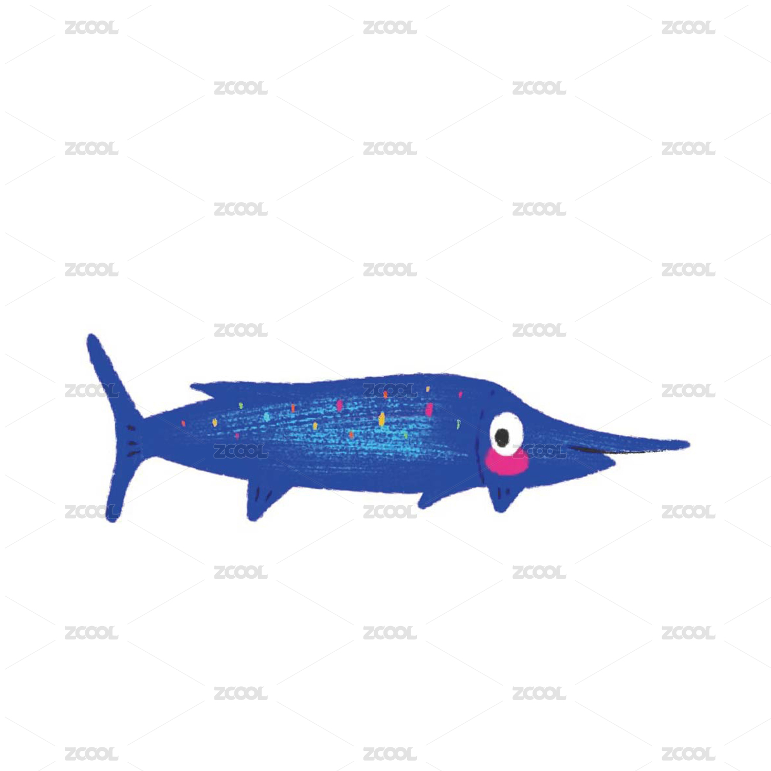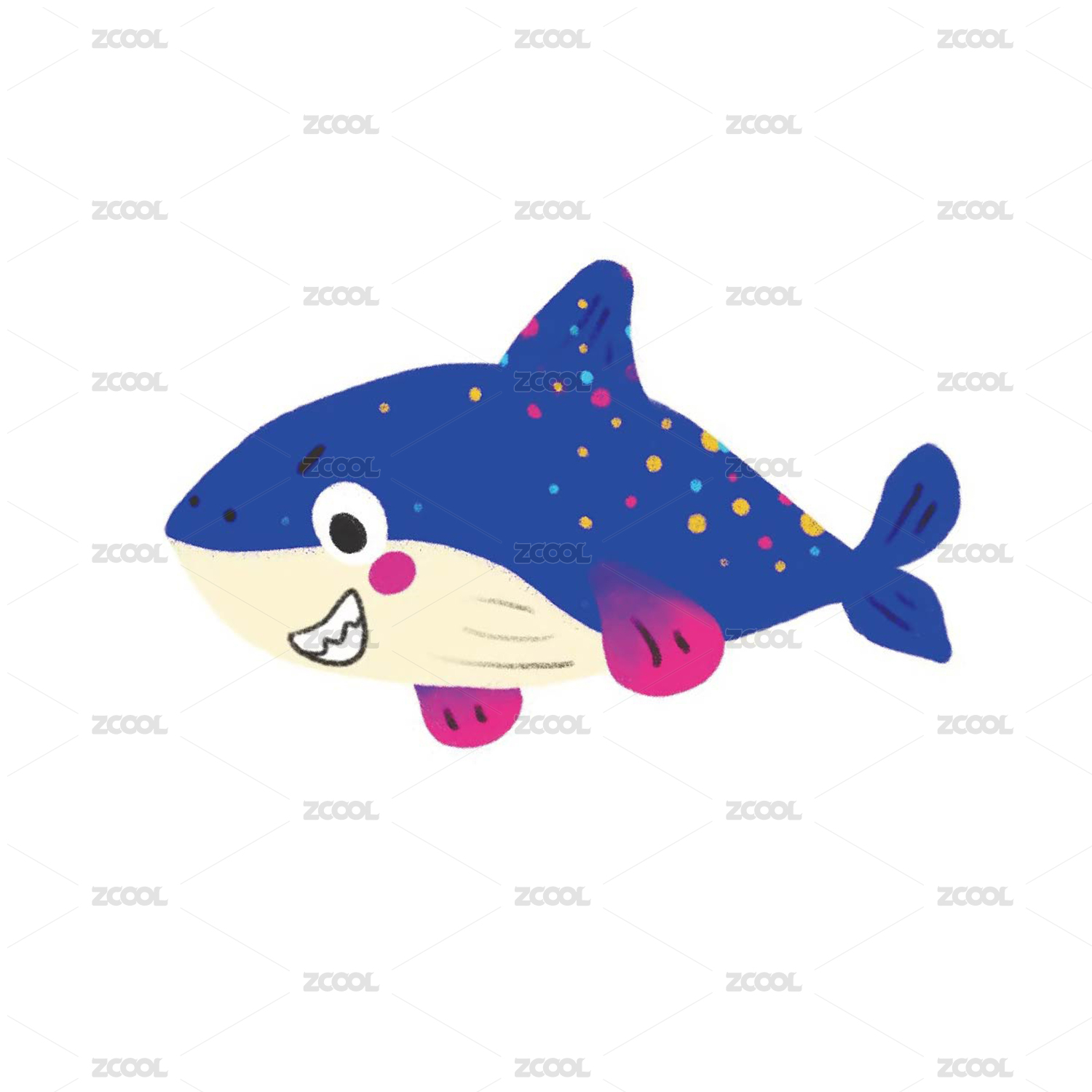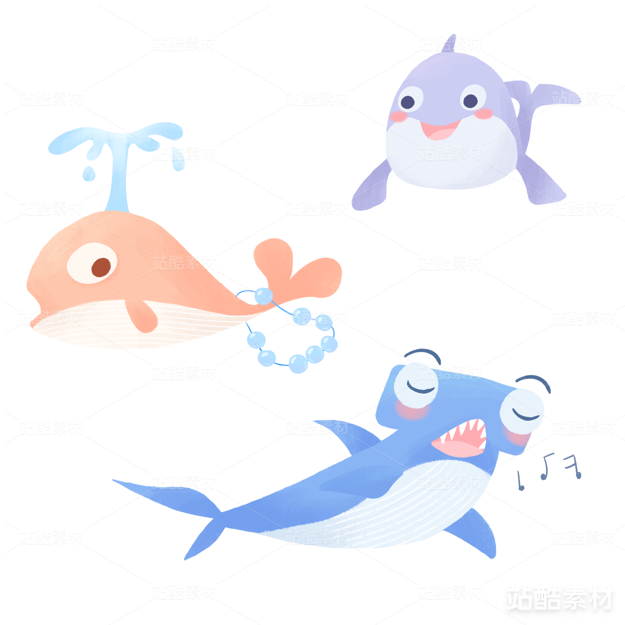 手绘拟人海洋动物海豚鲨鱼鲸鱼