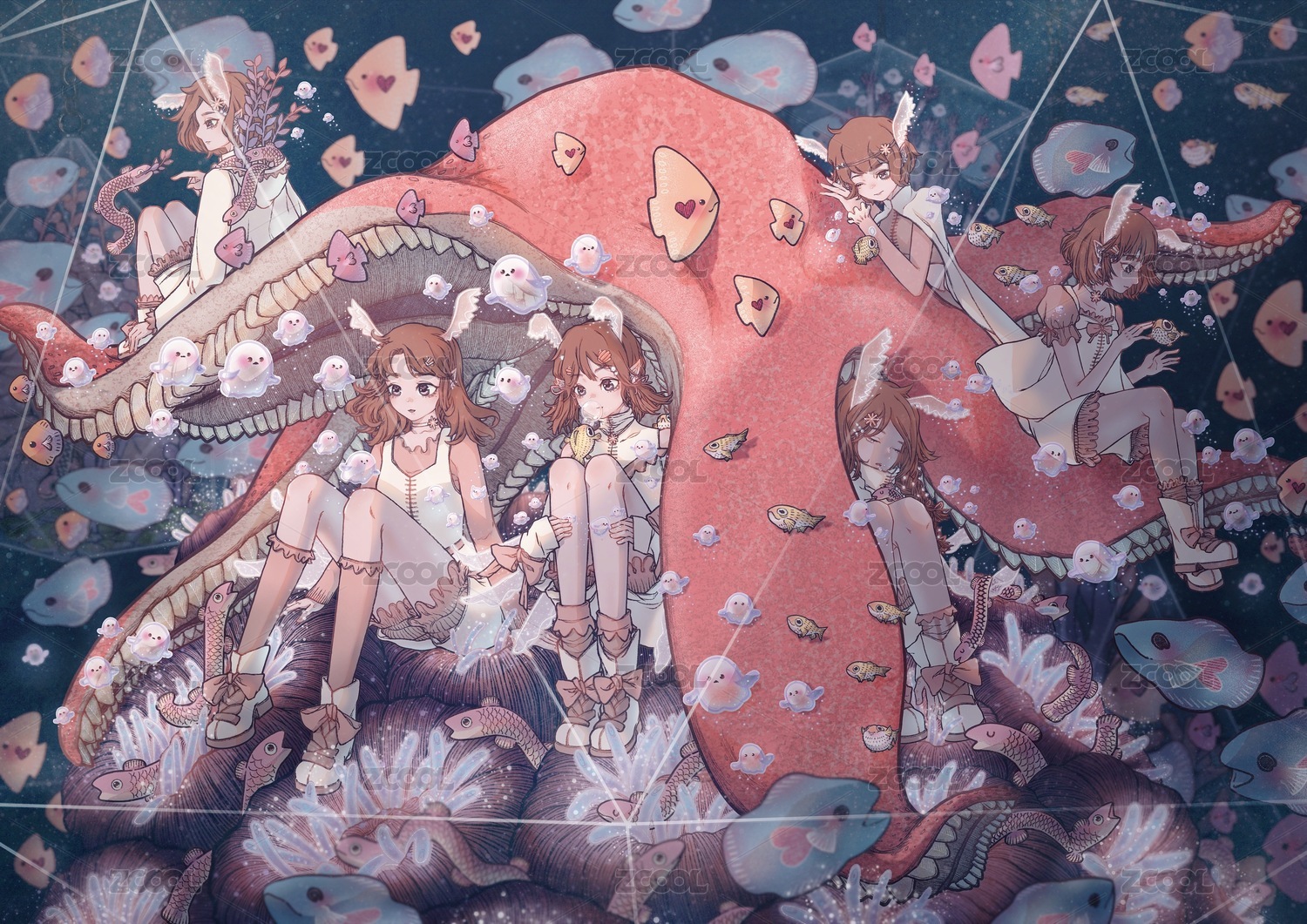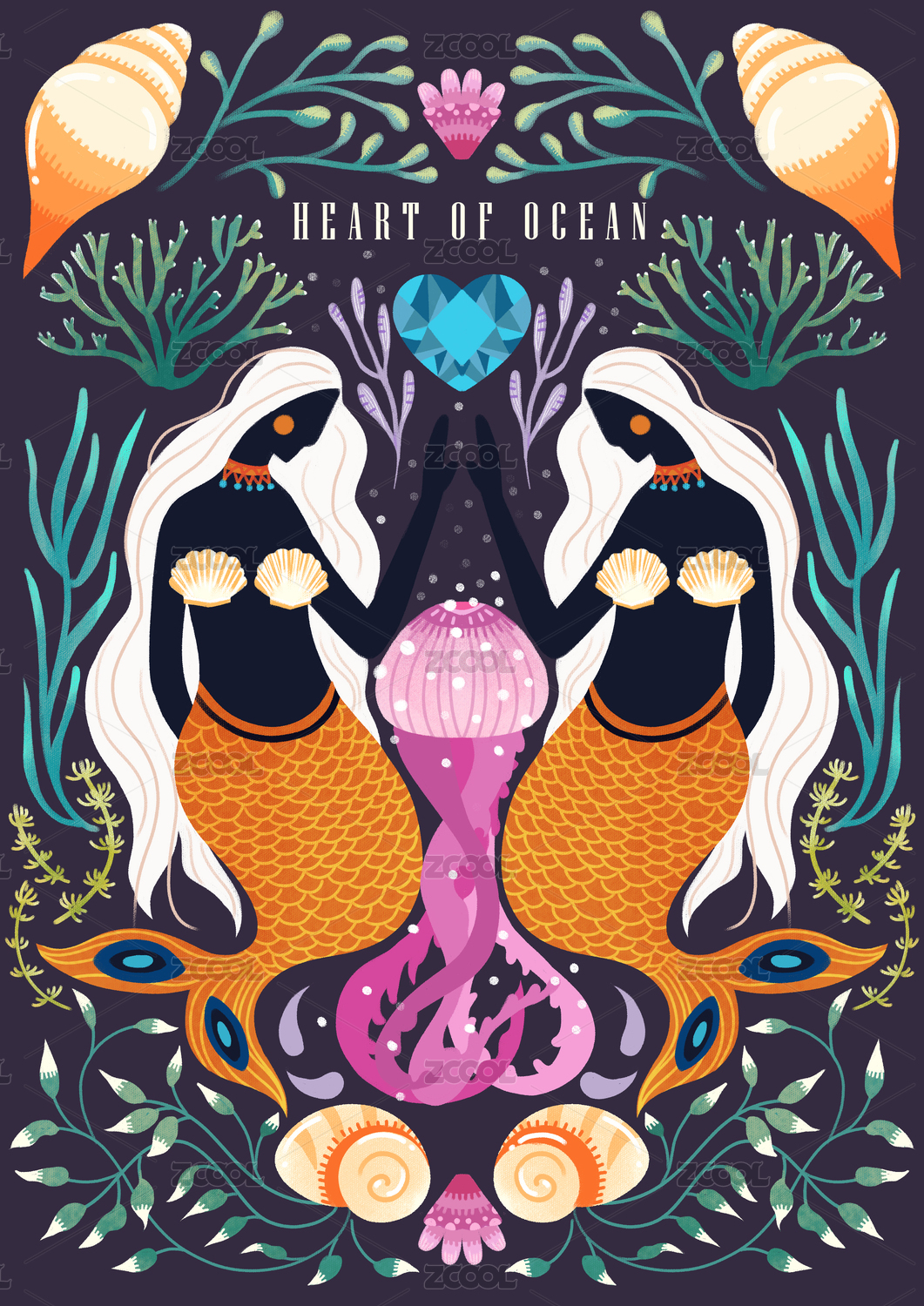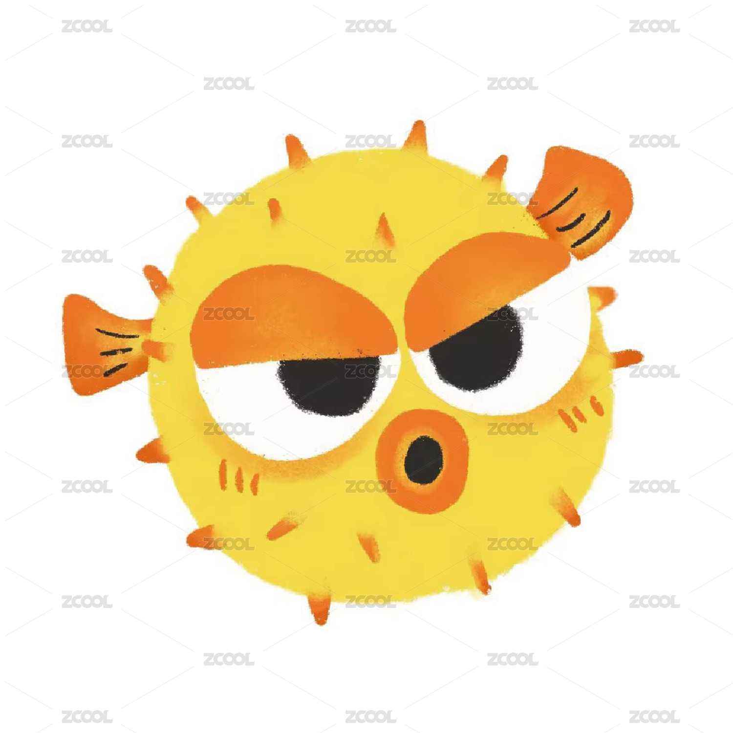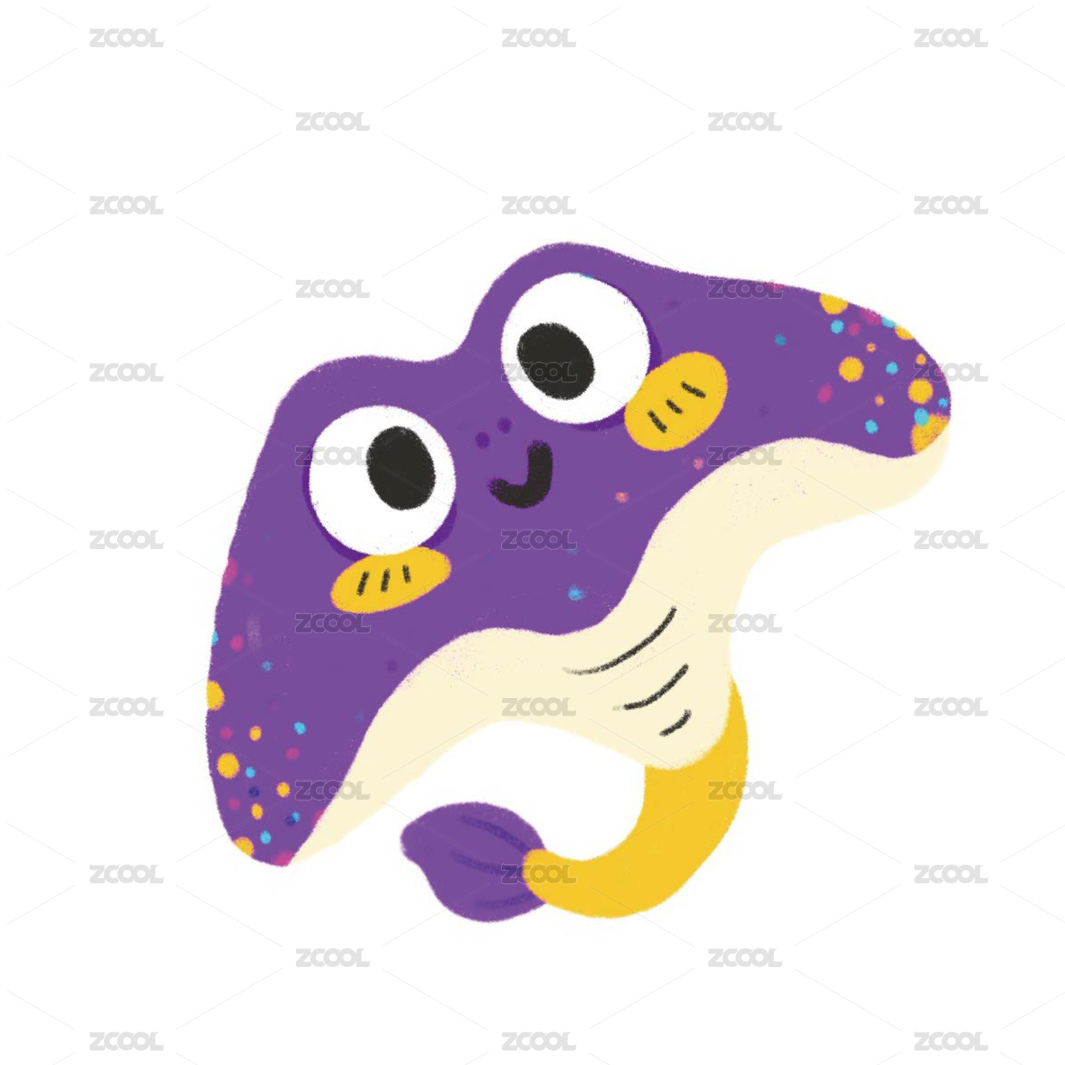 手绘拟人海洋动物海豚鲨鱼鲸鱼