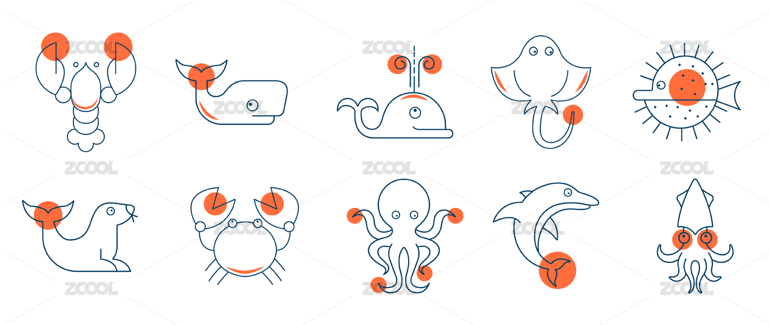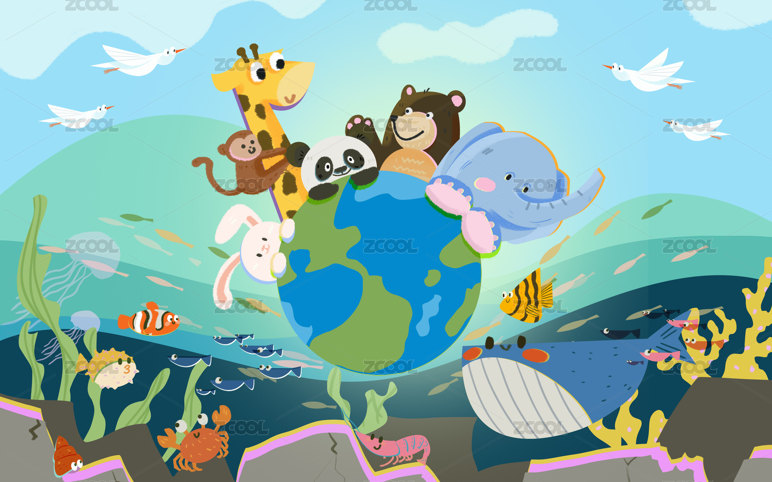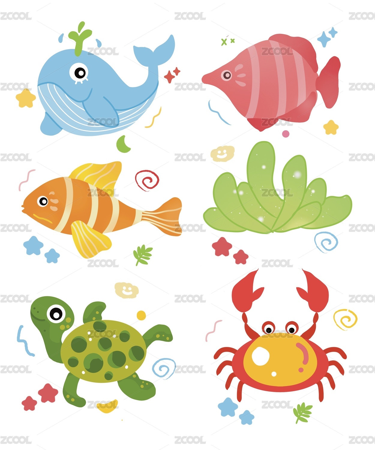 海洋卡通动物鲸鱼乌龟螃蟹图案
