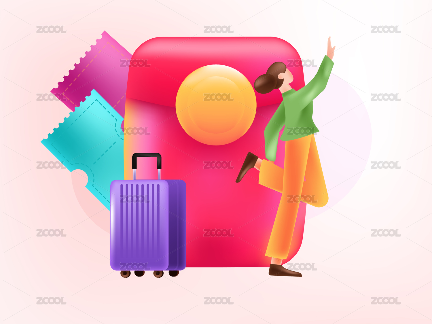 春运抢车票送红包创意场景人物插画