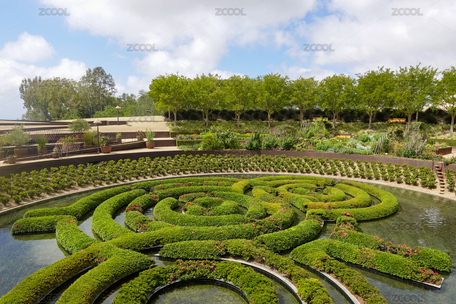 美国洛杉矶盖蒂中心对称几何图案花园