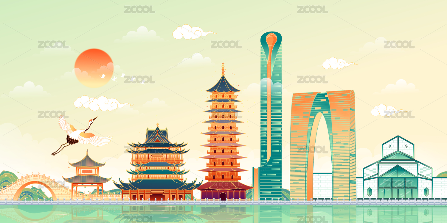 江苏苏州城市地标建筑插画