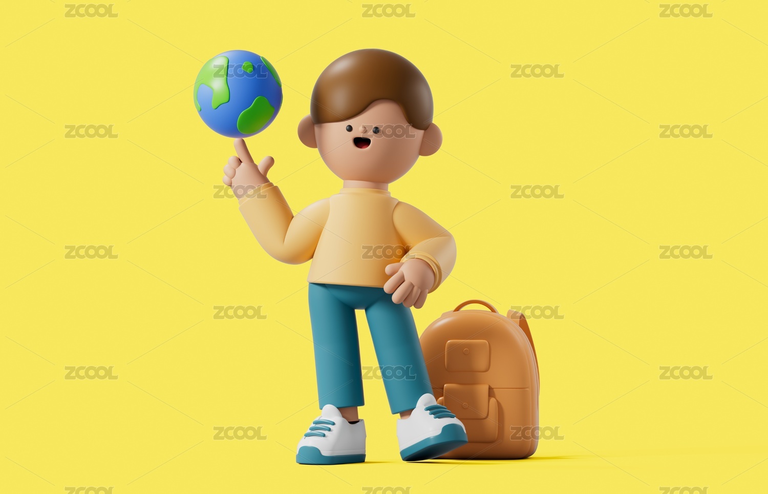 3D渲染的可爱男孩