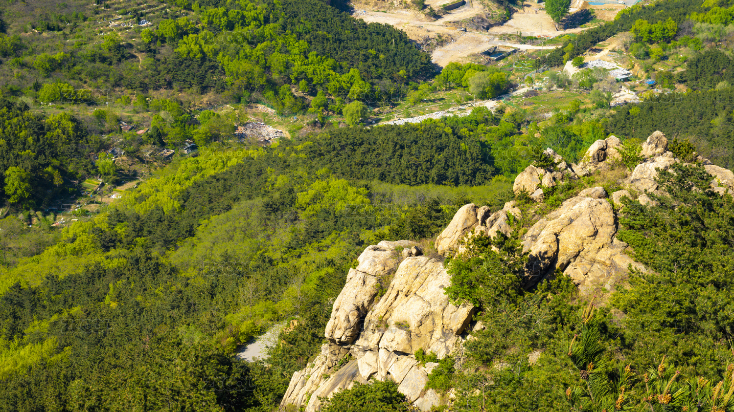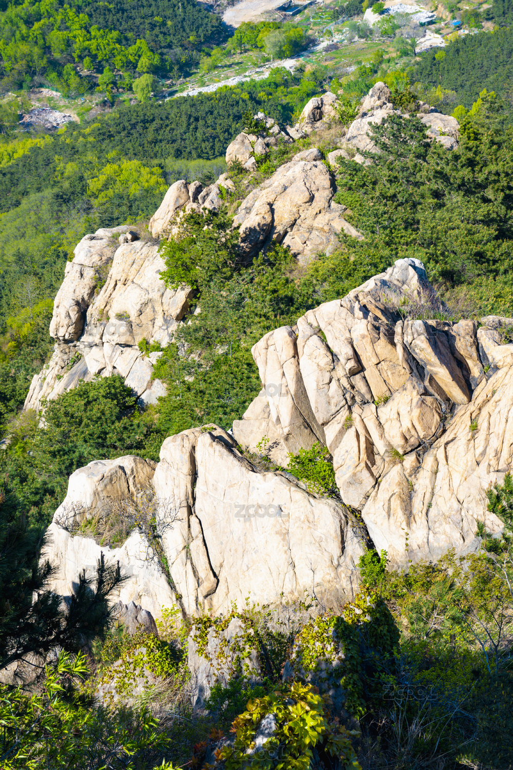 青山上裸露的岩石自然风光