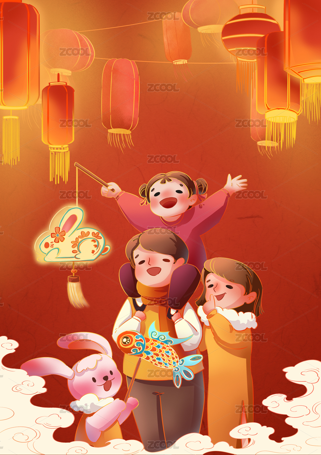 一家人出门看元宵灯会