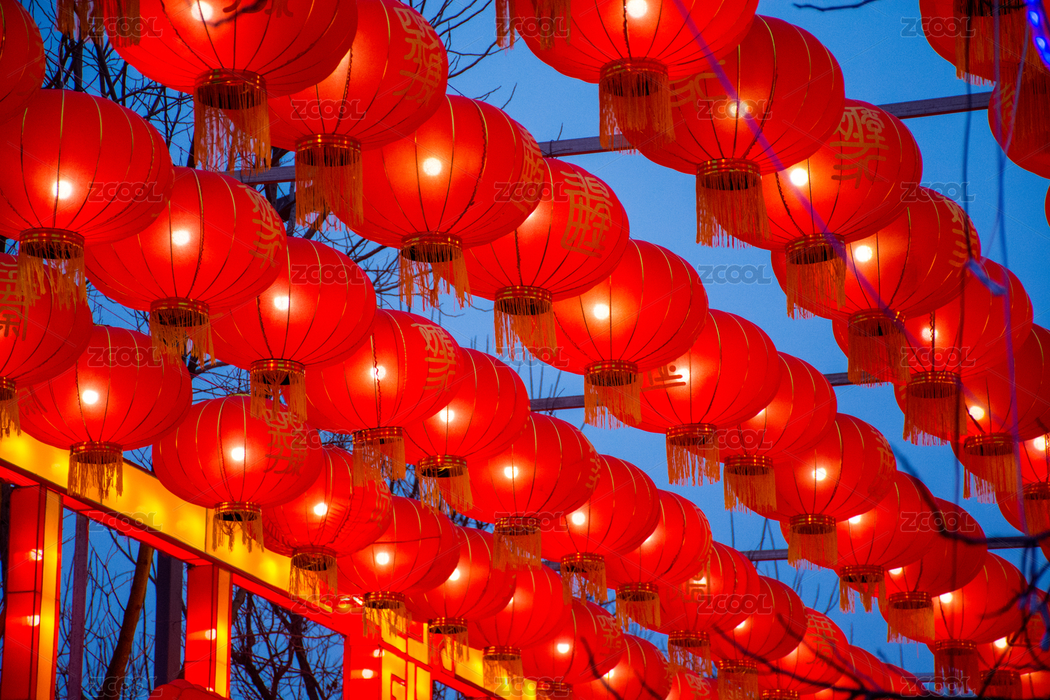 元宵灯会上挂着的一片红灯笼