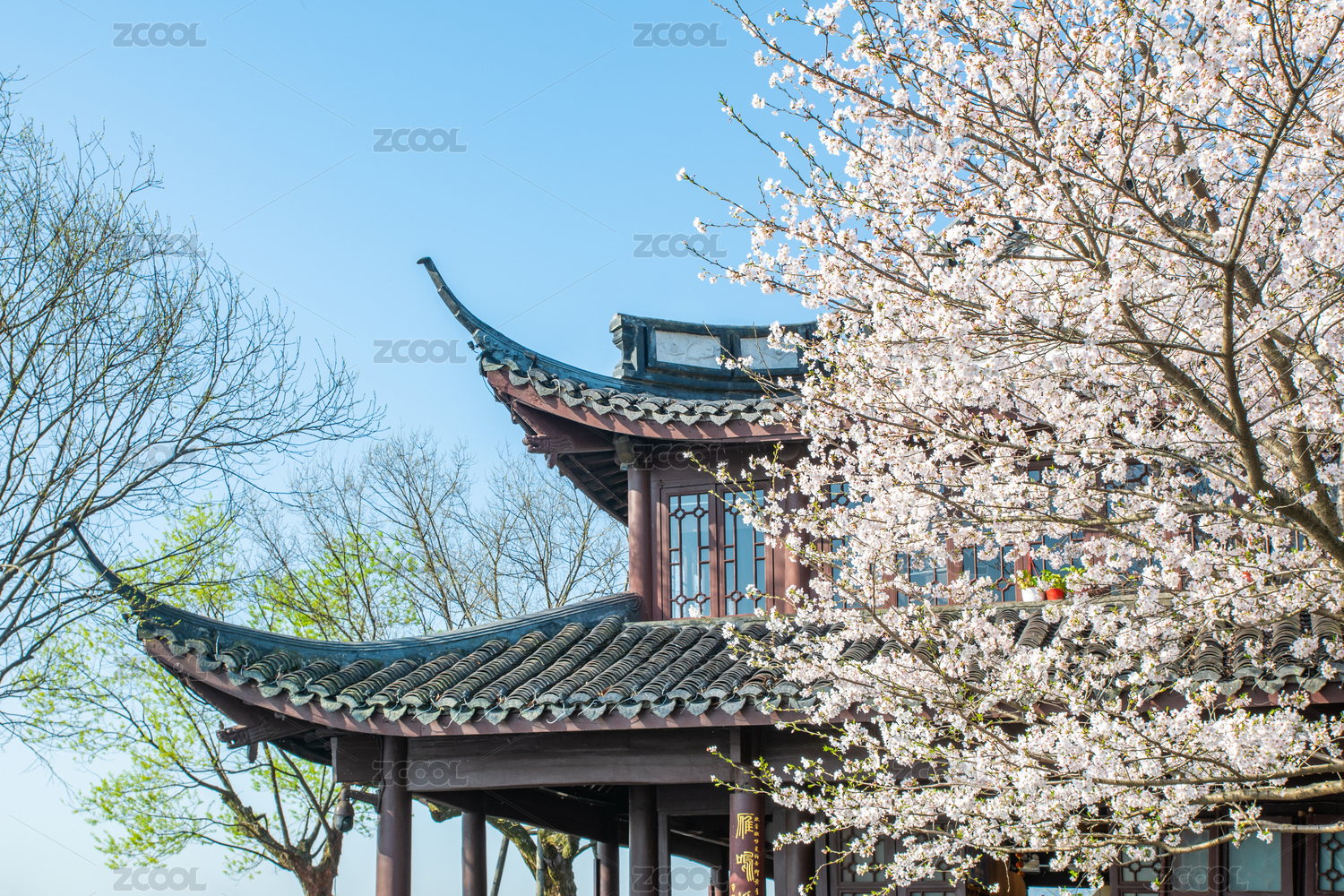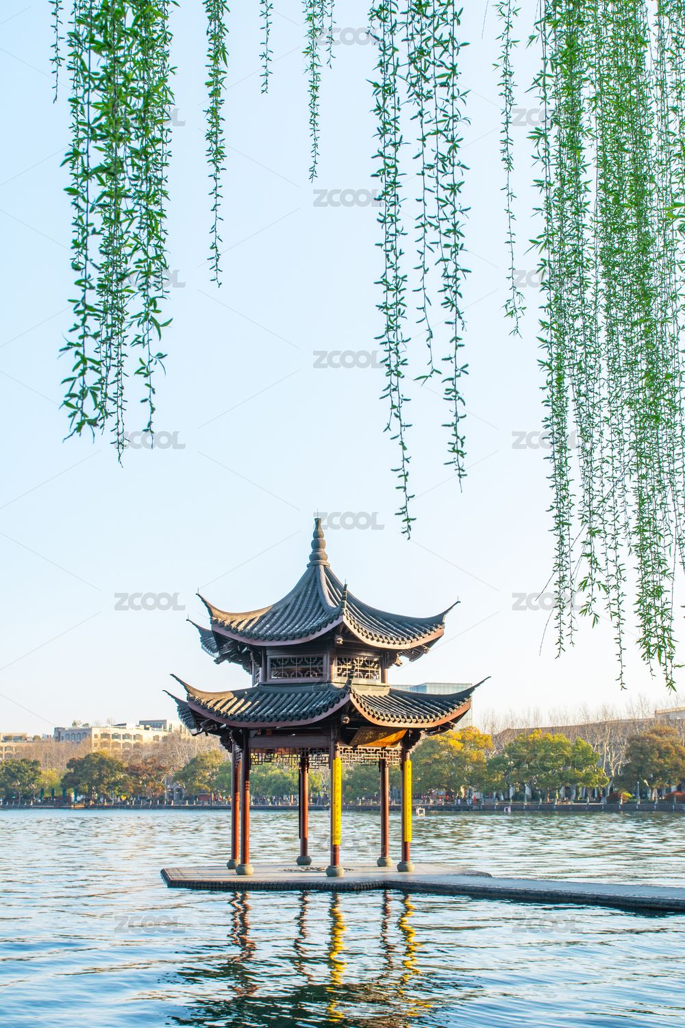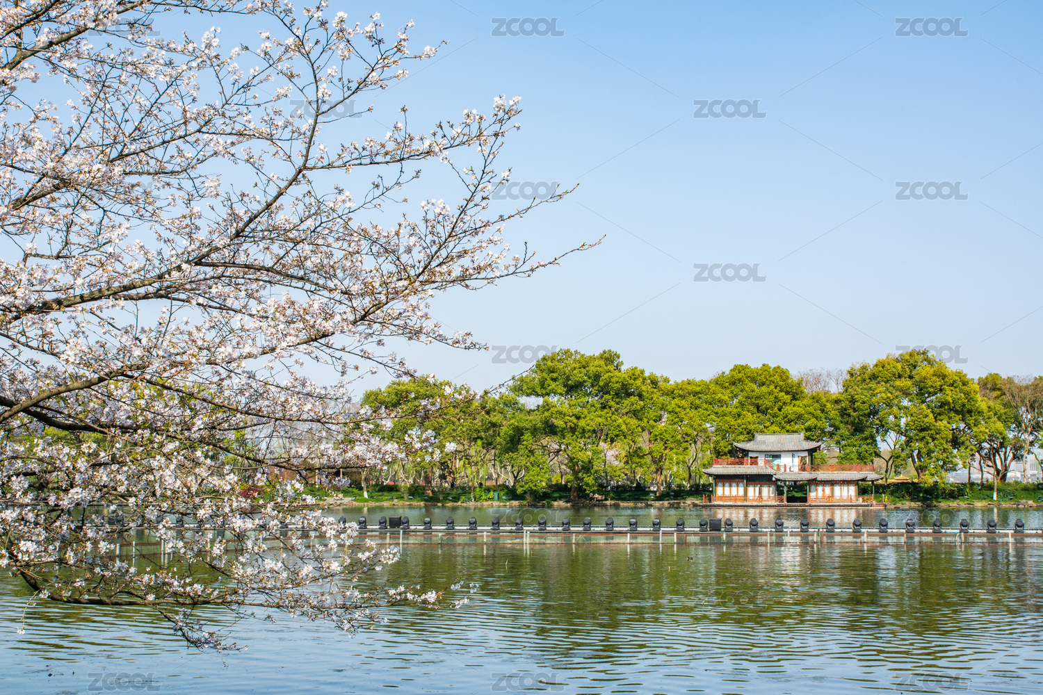 浙江杭州西湖地标建筑集贤亭春景