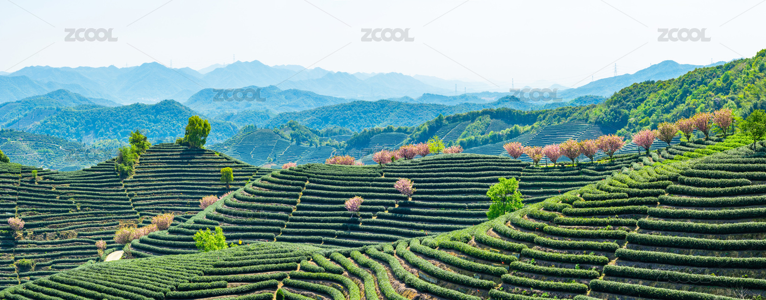 浙江杭州富阳拔山梯田茶园春景