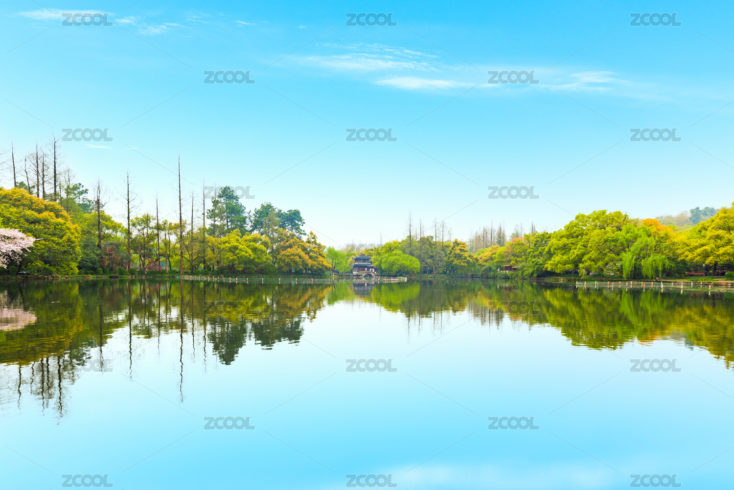 浙江杭州西湖平湖秋月江南园林春景