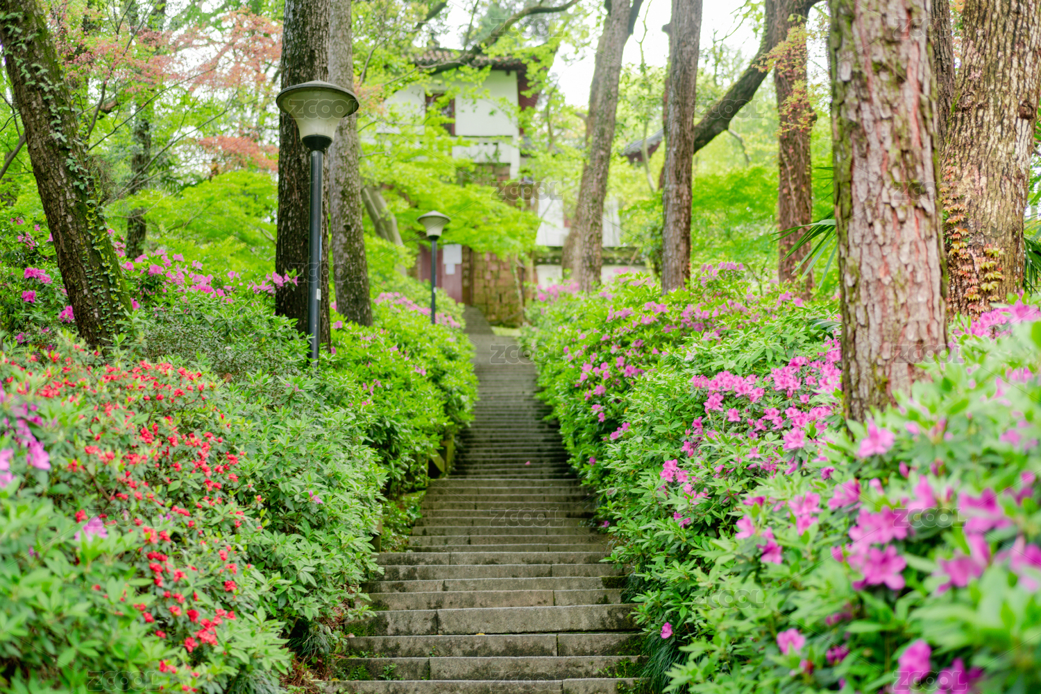 浙江杭州西湖花港公园园林春景