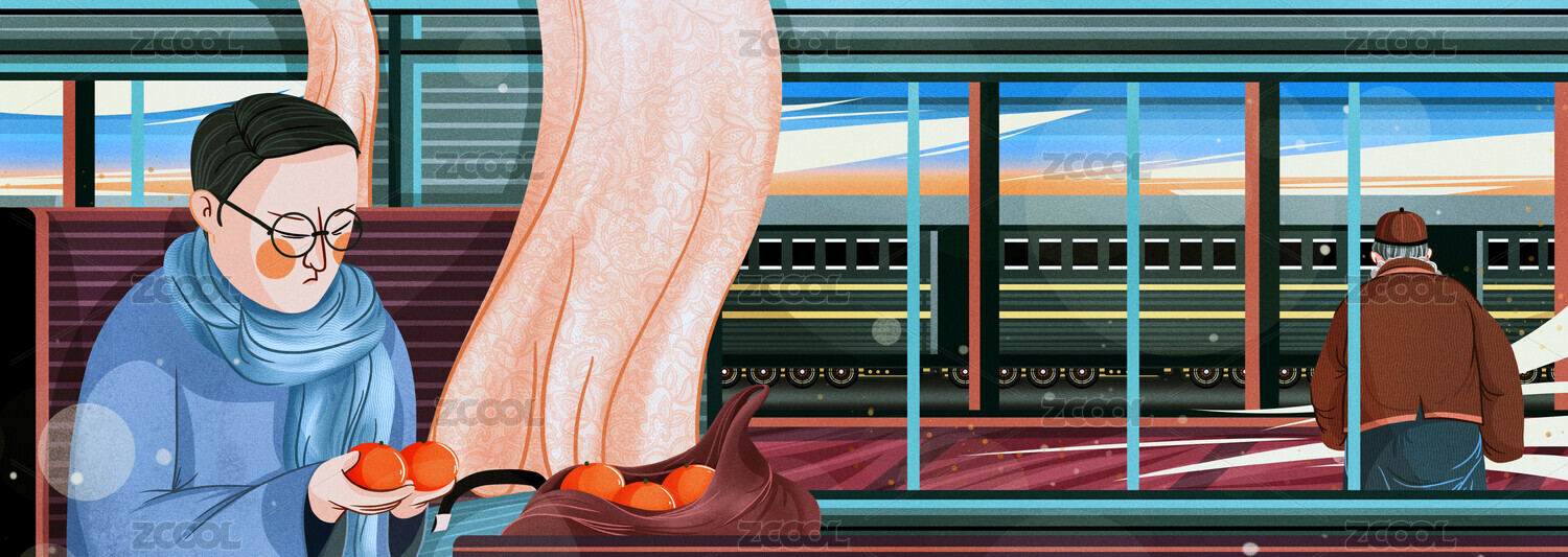 父亲节主题背影与橘子海报插画