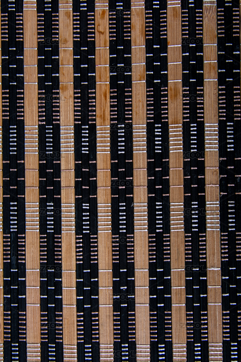 黑色条纹竹帘子上的一个普洱茶茶饼