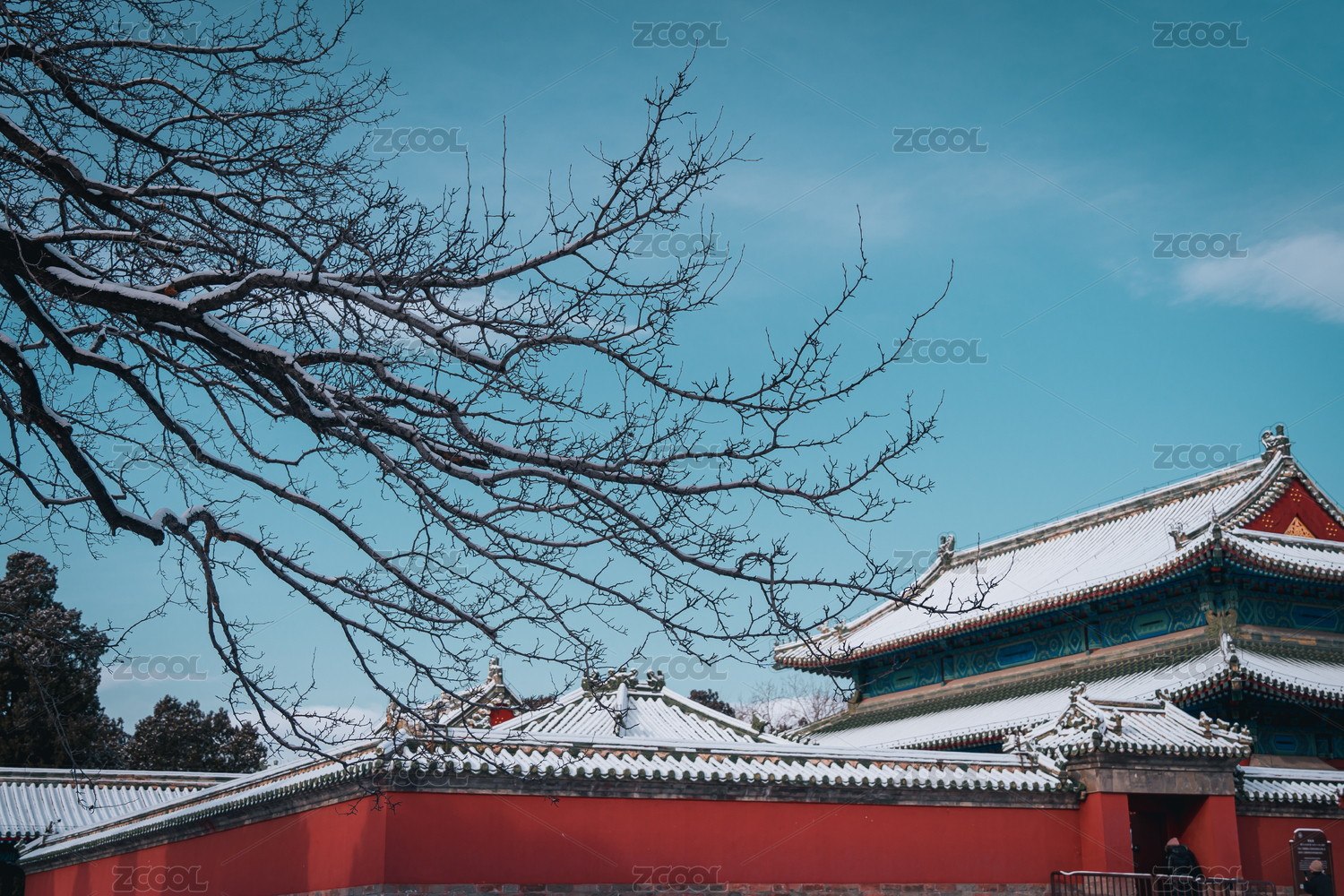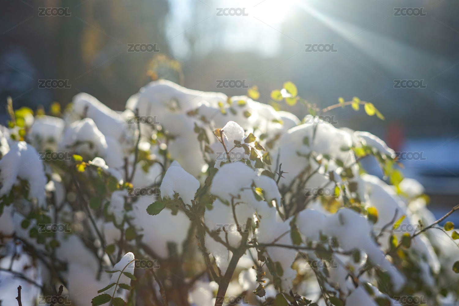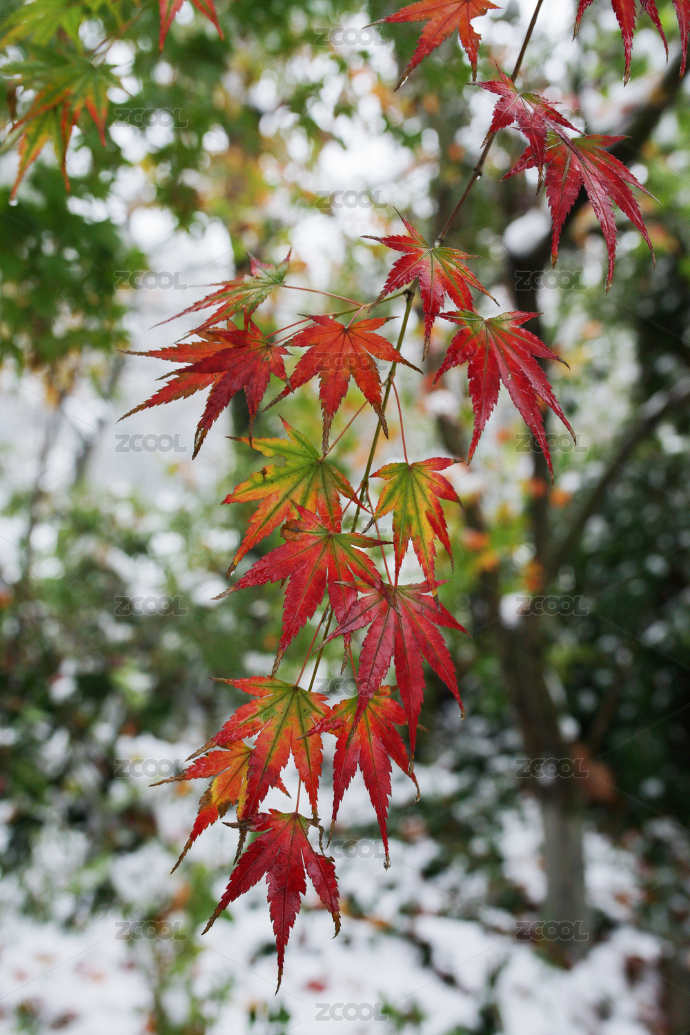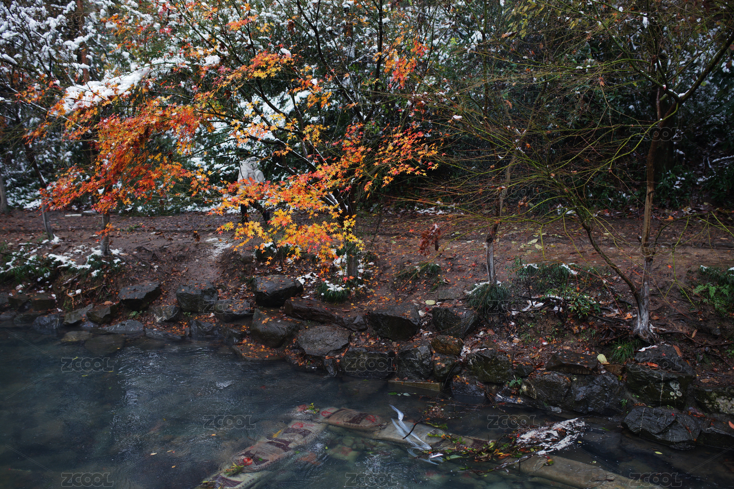 杭州九溪十八涧深秋初冬初雪大雪覆盖枫叶树