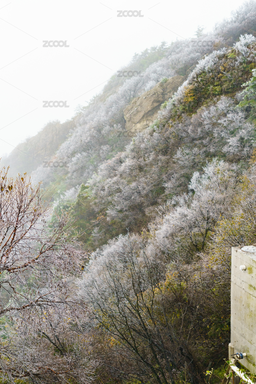 河南省洛阳市栾川县老君山秋季云雾初雪风光