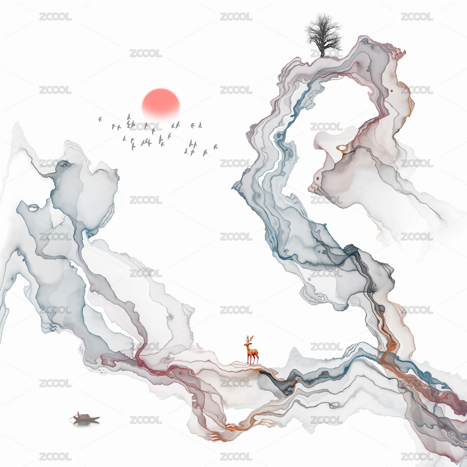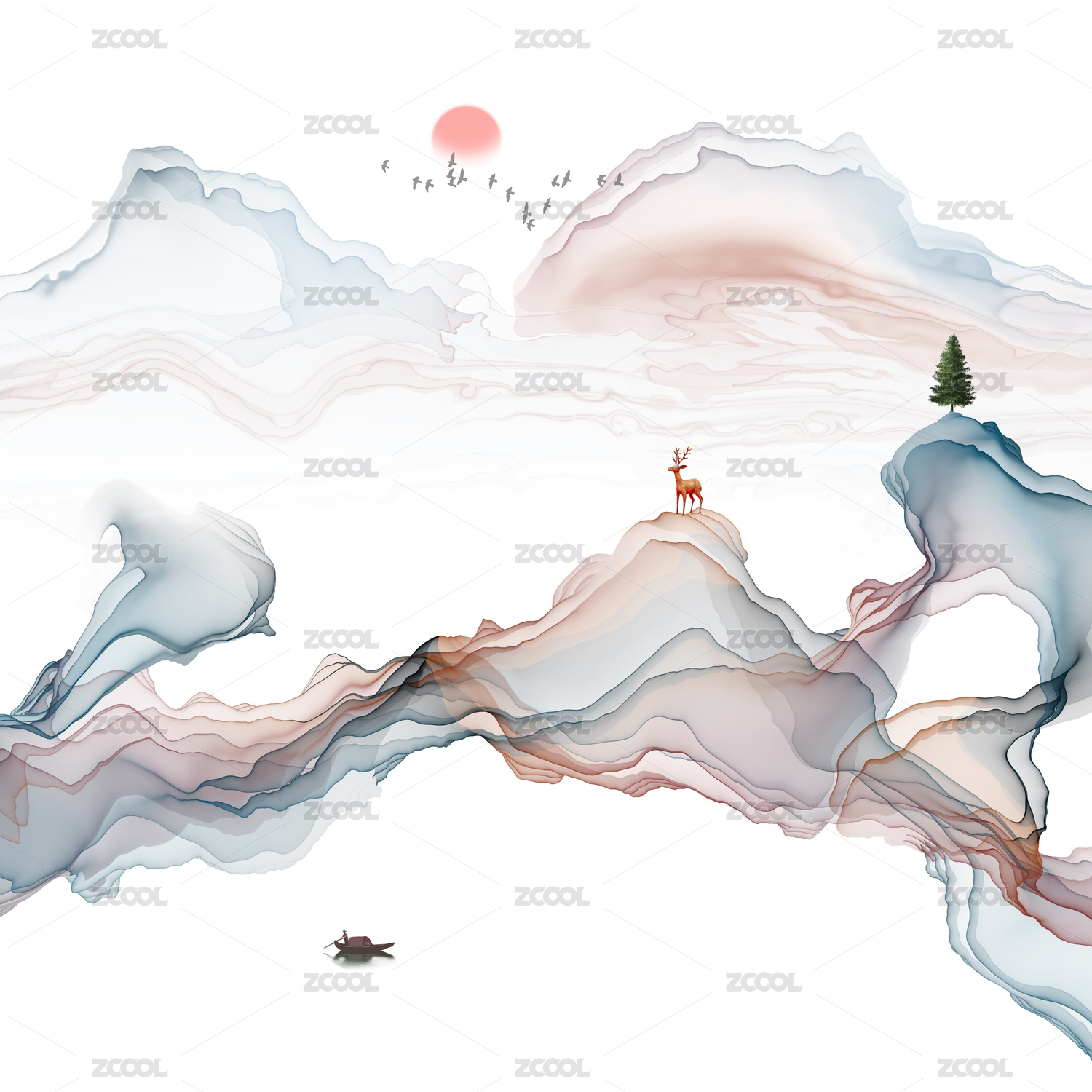 彩色水彩水墨装饰画