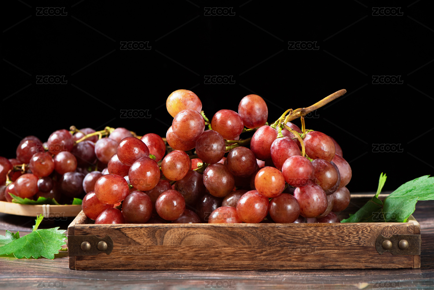 木底上放着一盘克伦生红提