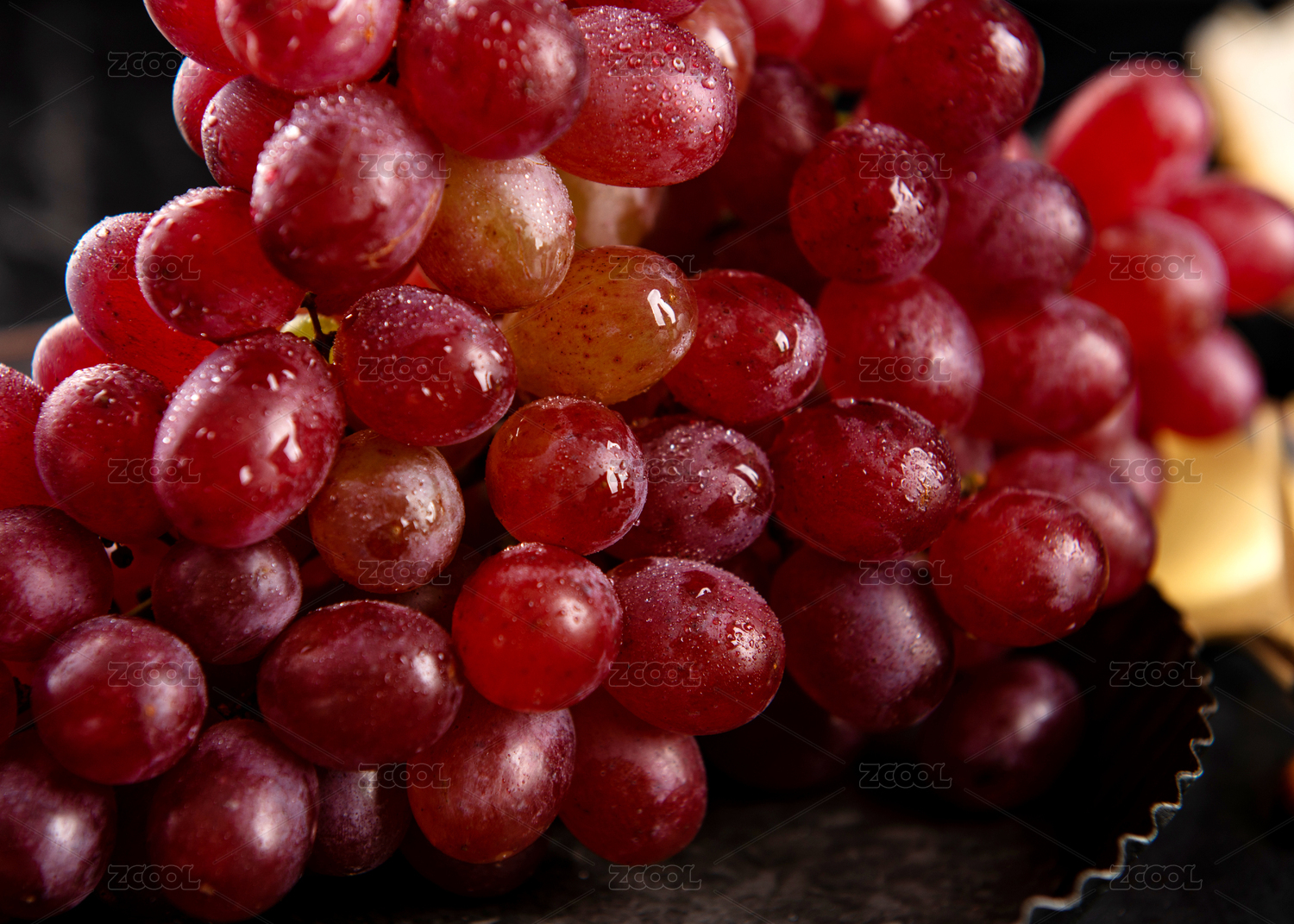 深色背景上摆放的新鲜红提