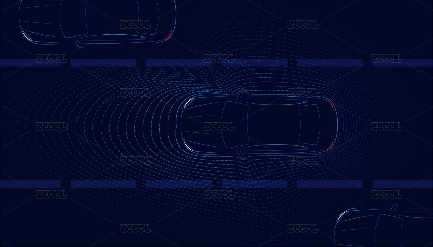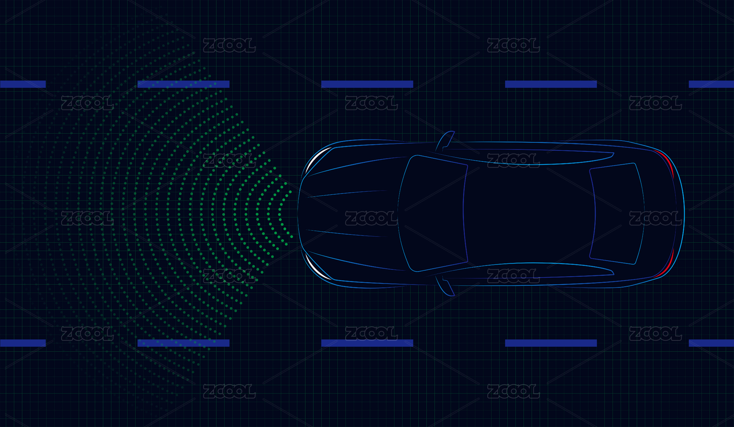 矢量极简汽车自动驾驶概念顶视图