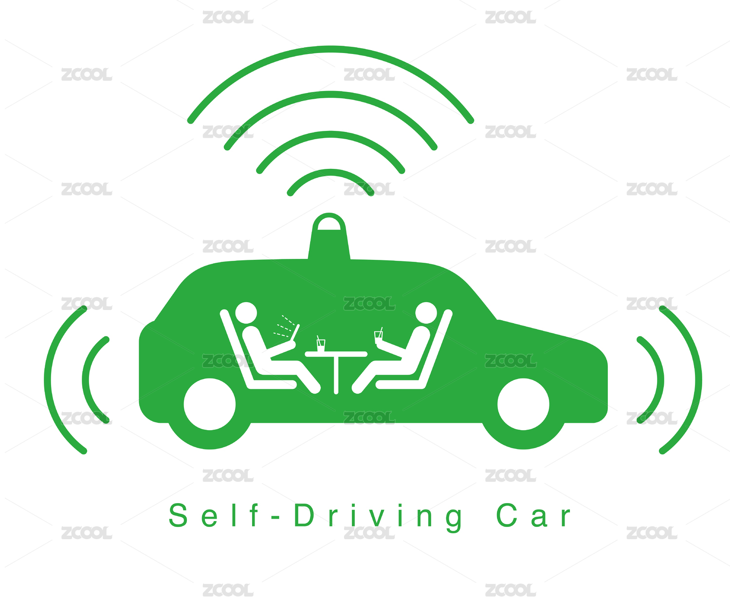 绿色电动自动驾驶汽车图标