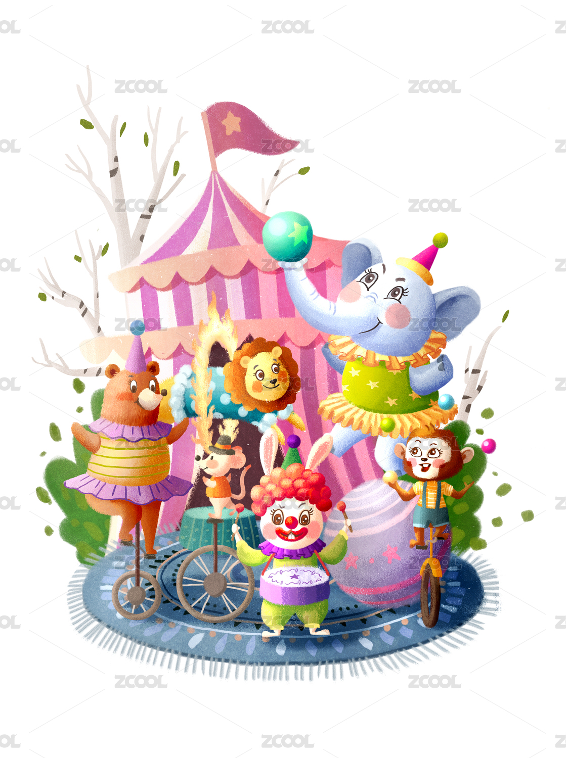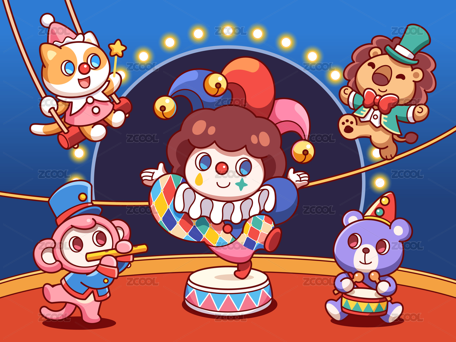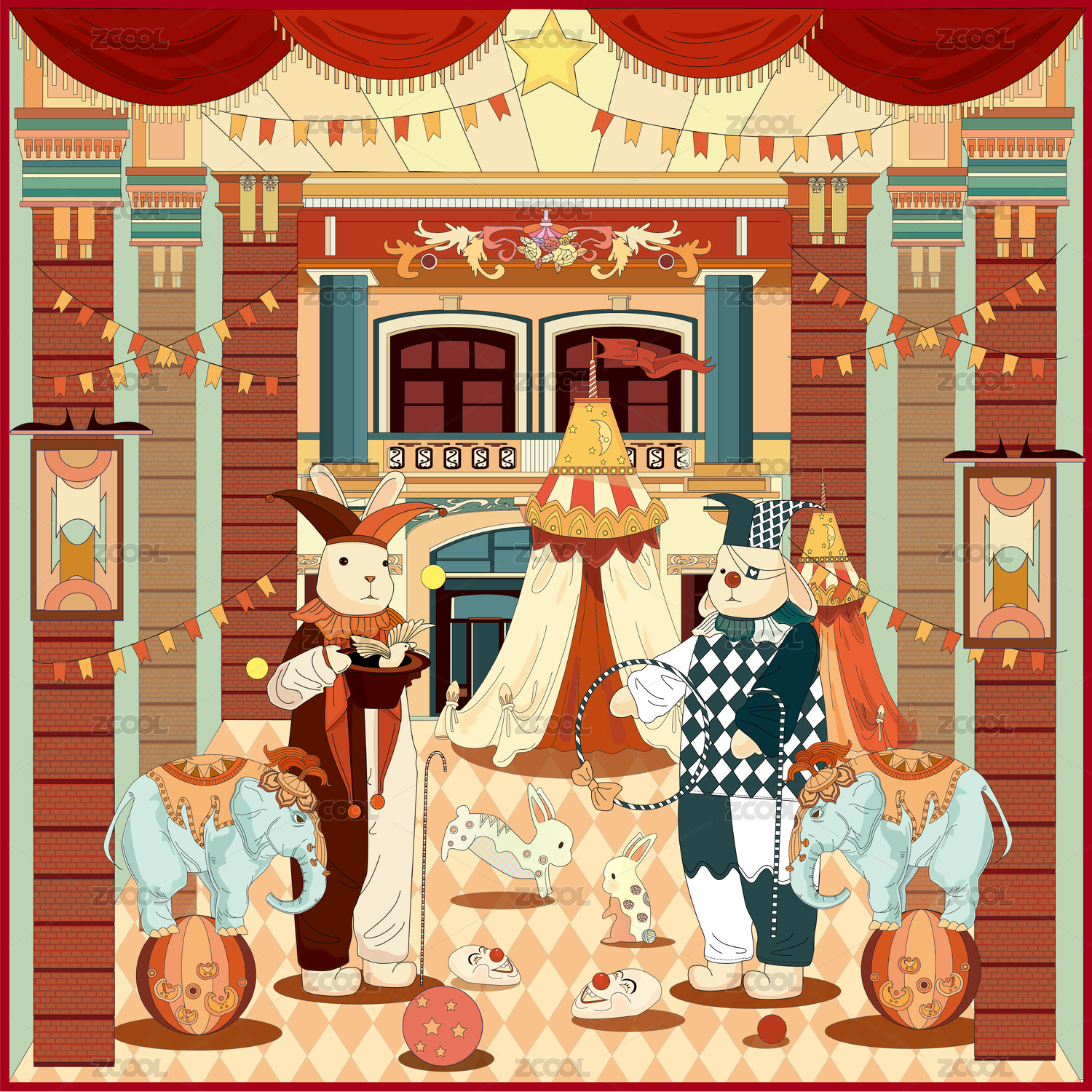 原创矢量萌宠马戏团插画