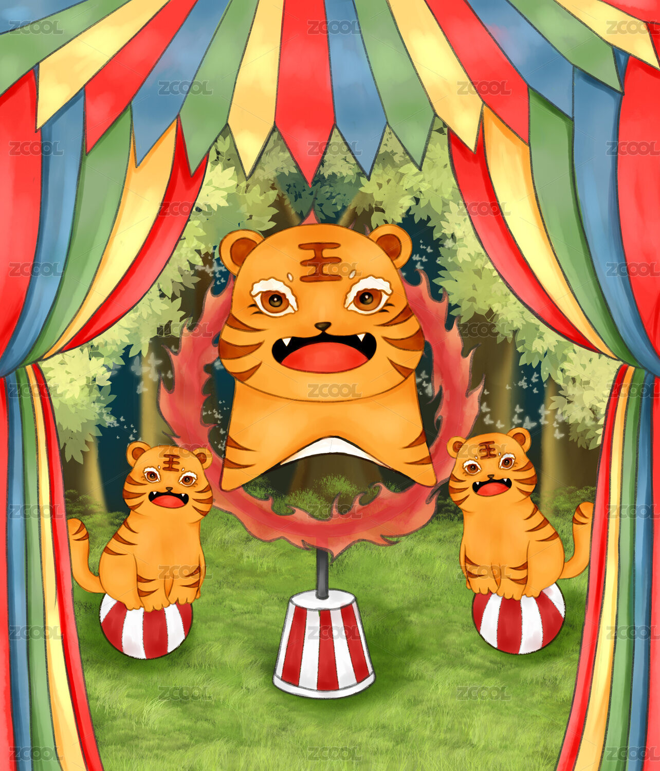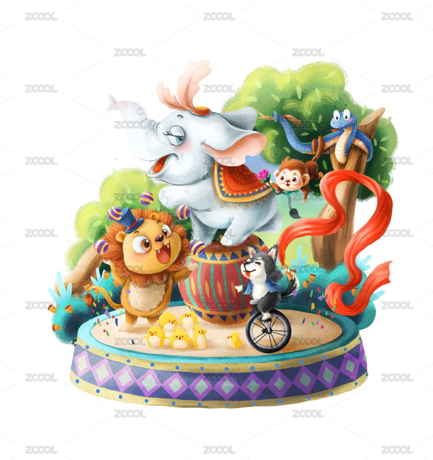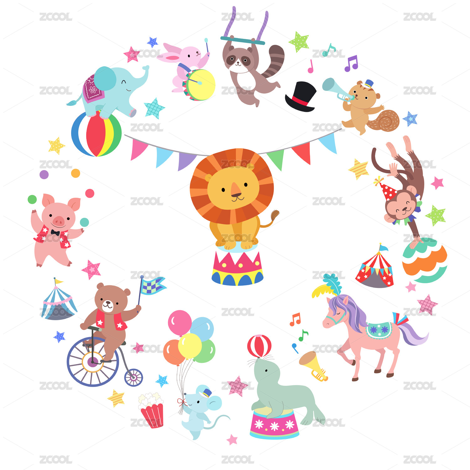 原创矢量萌宠马戏团插画