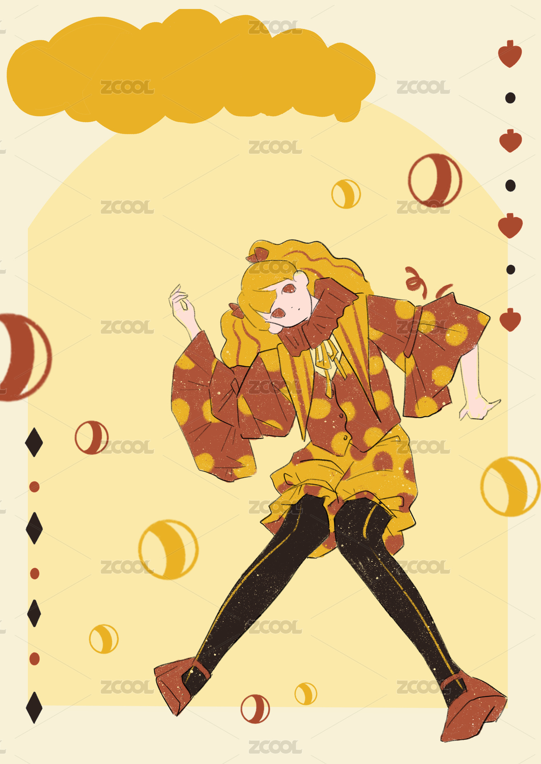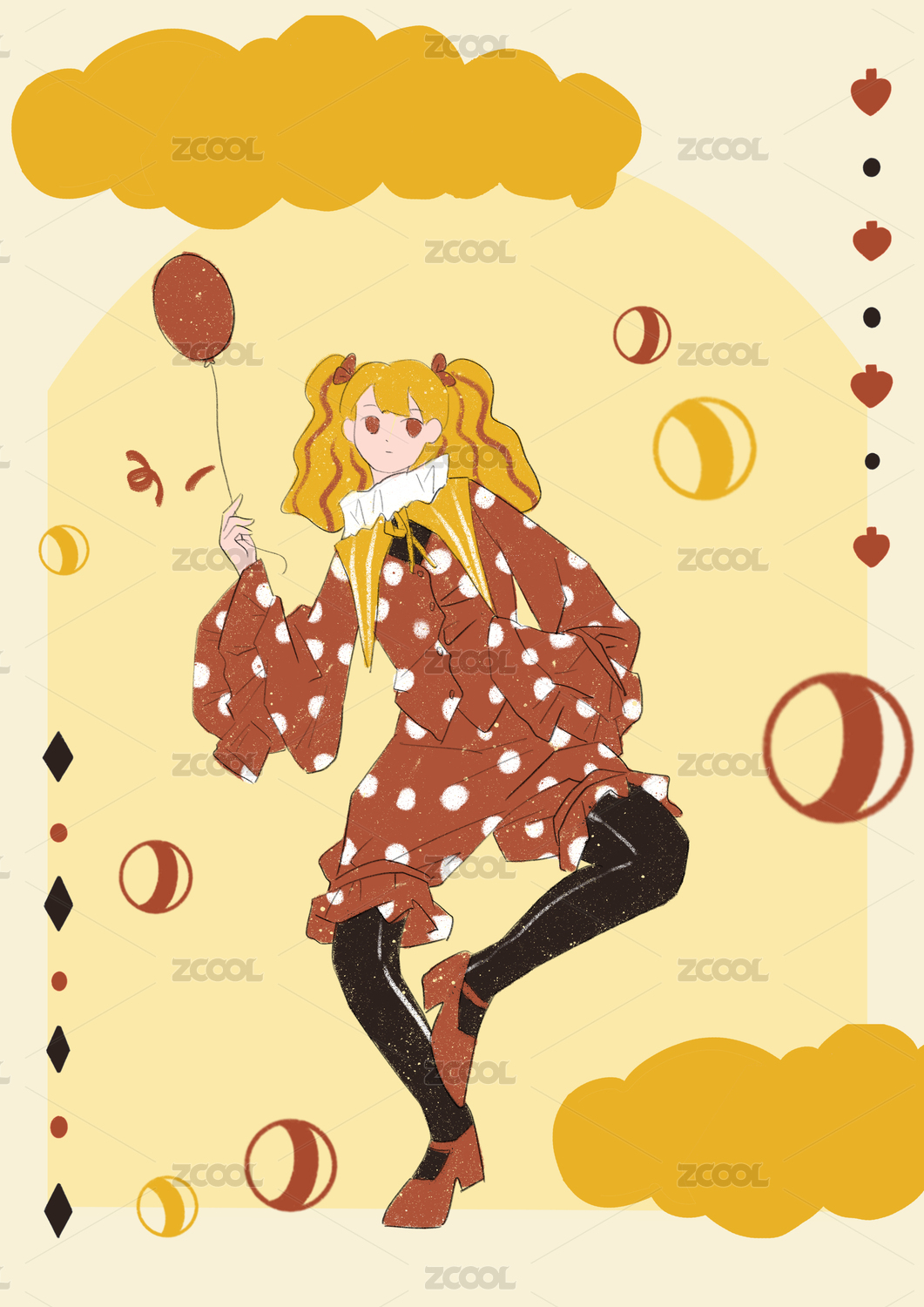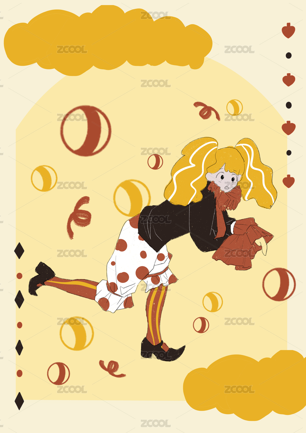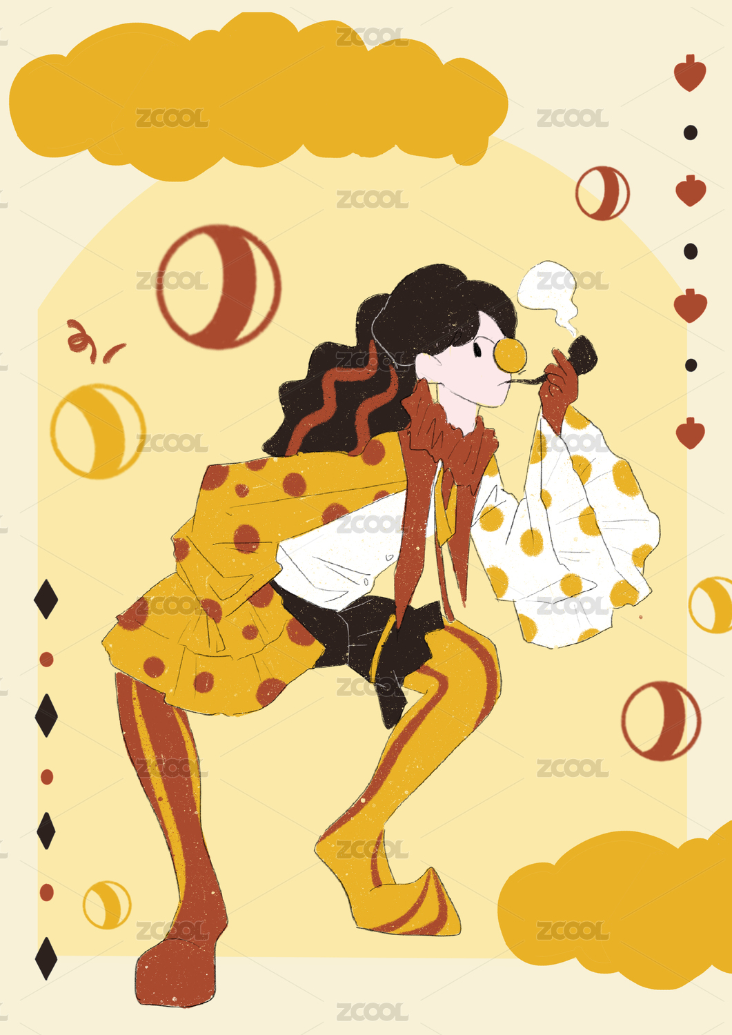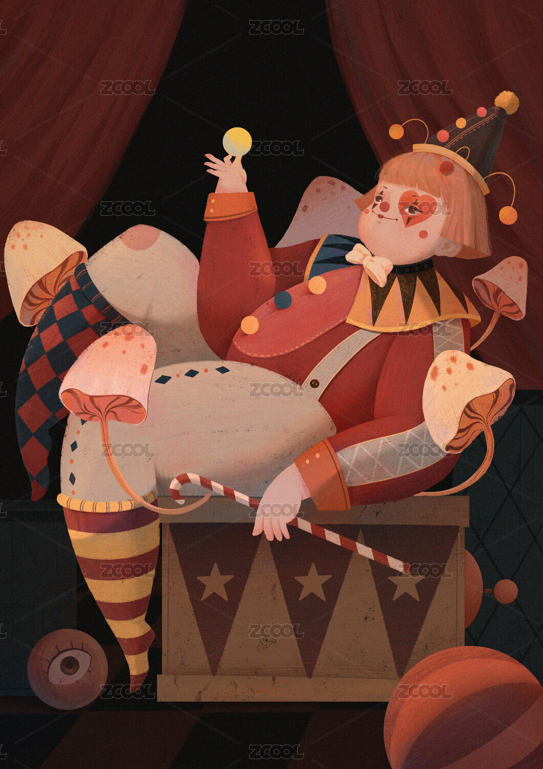 马戏团小丑手绘插画海报