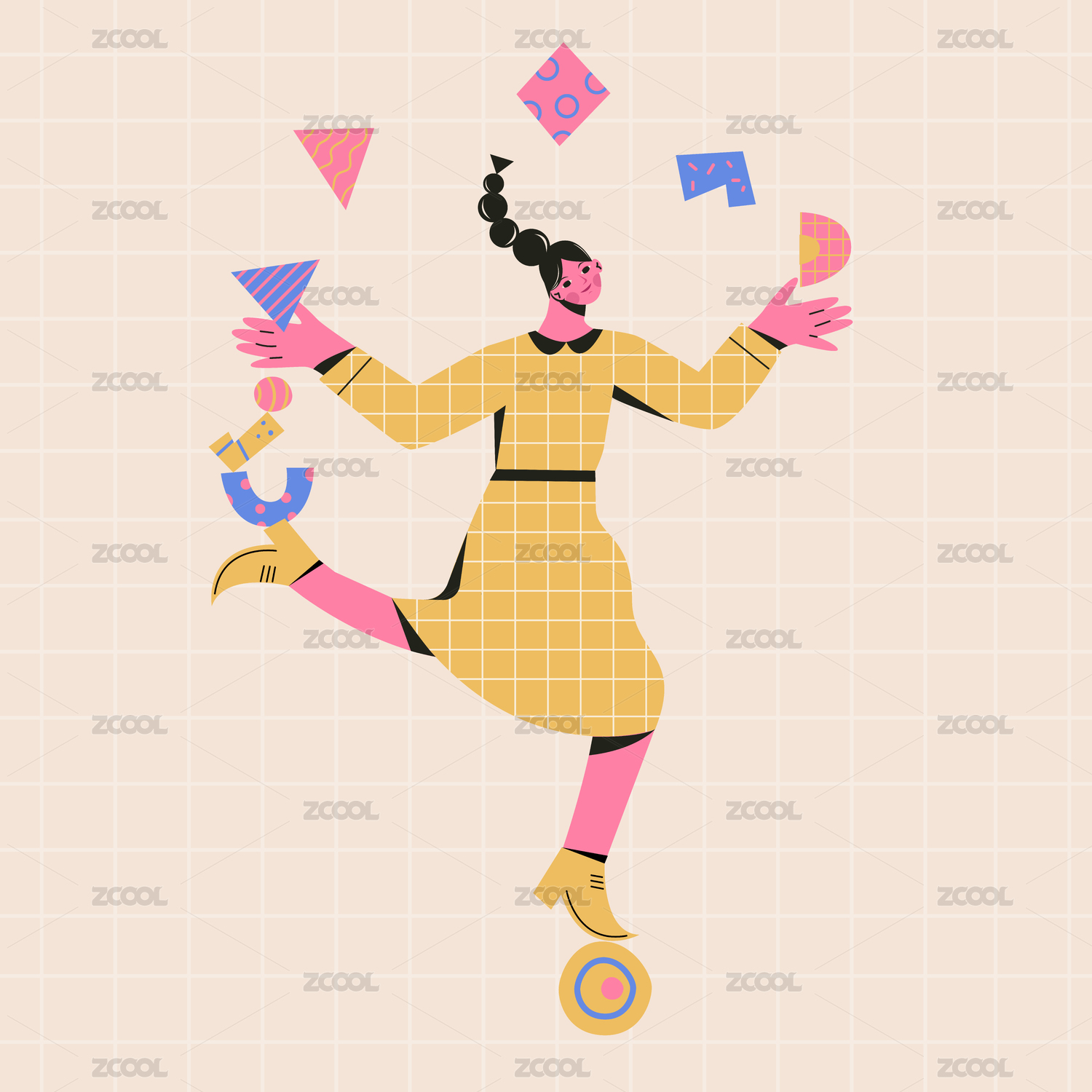 抛接着几何玩具的马戏团少女