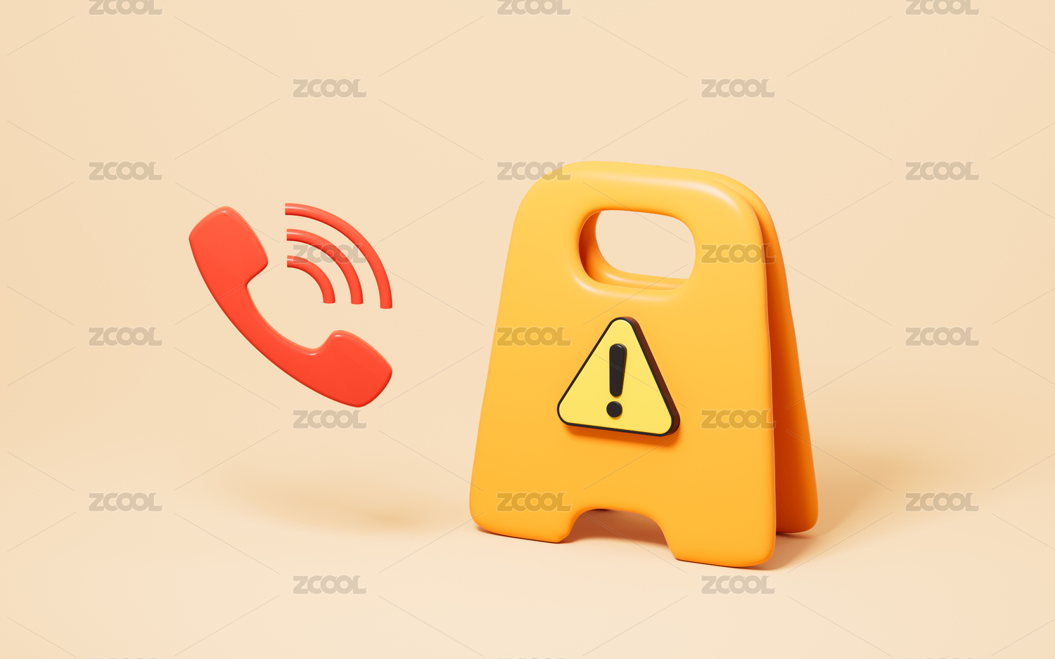 警示牌和维修热线3D渲染
