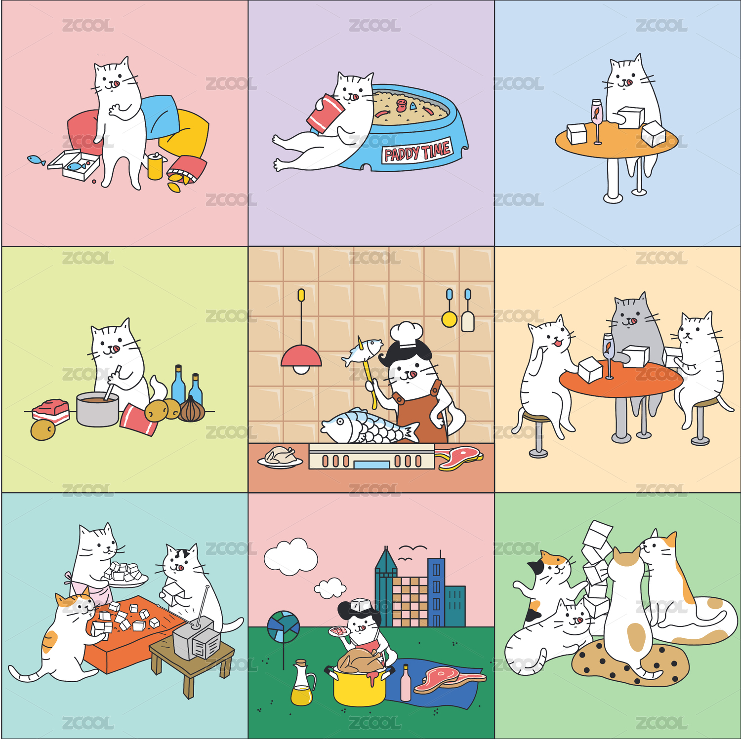 猫咪插画可爱宠物动物套装矢量图猫动物图案