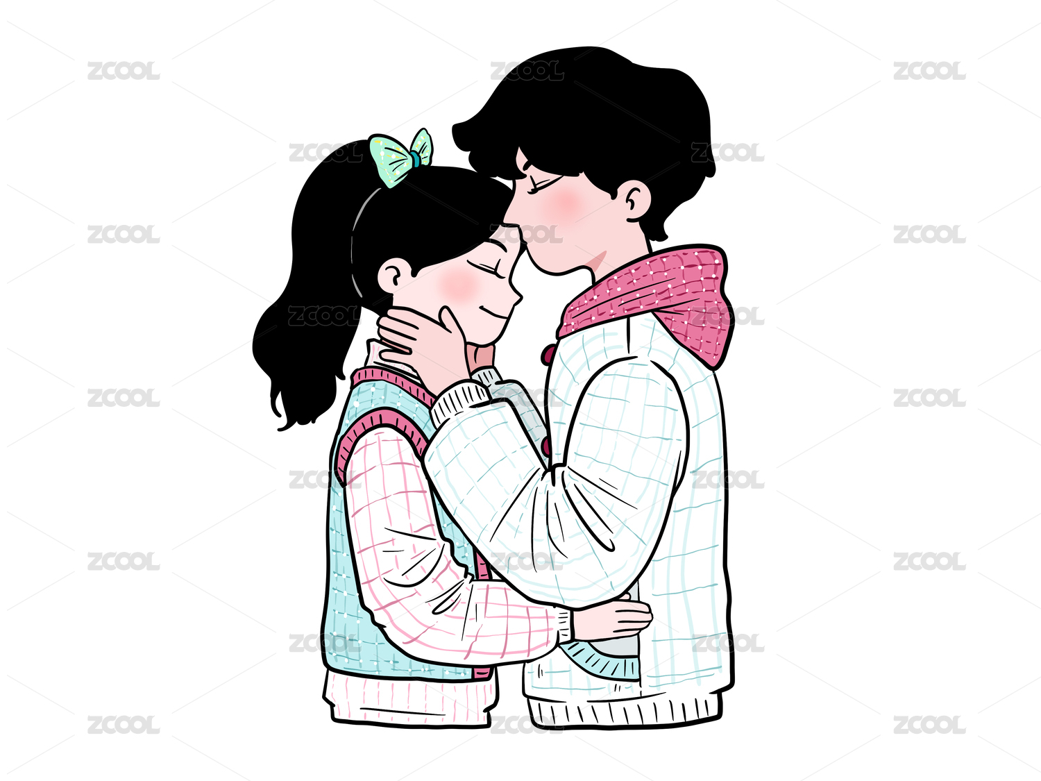 彩色3D卡通男孩女孩恩爱相爱度假