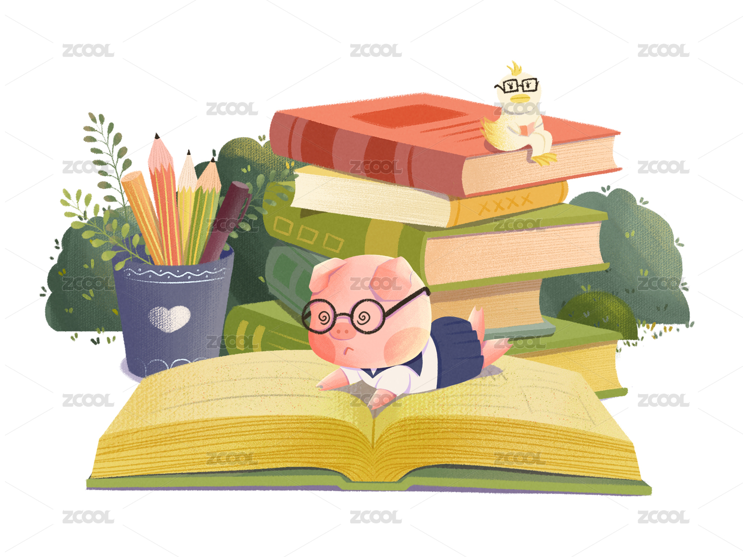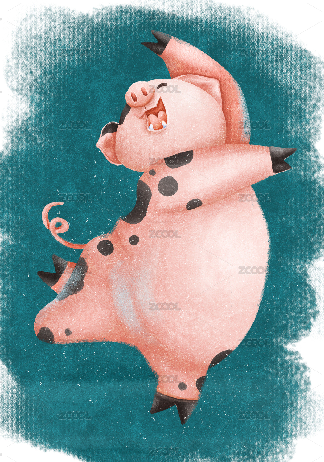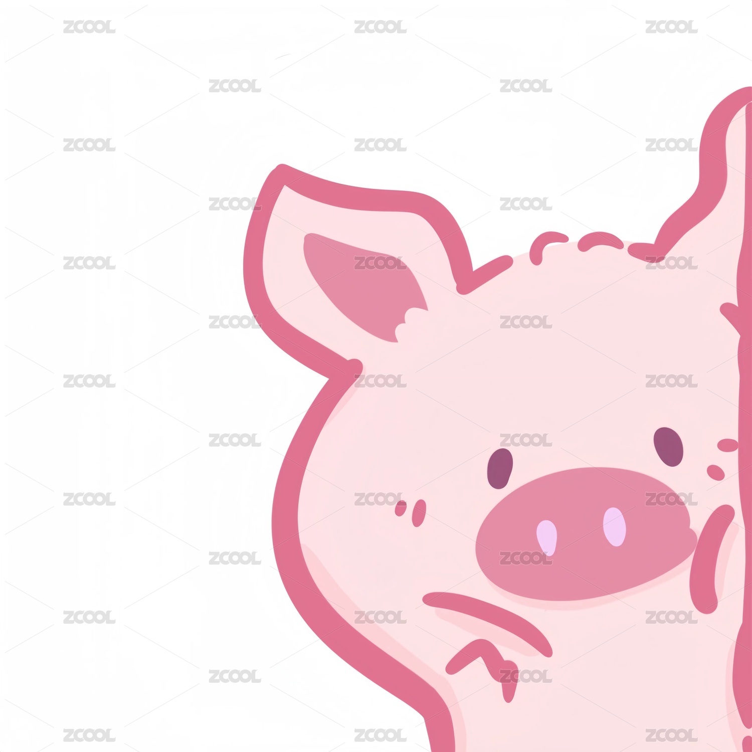 可爱粉红色蜡笔风格的小猪表情包形象插画艺术设计