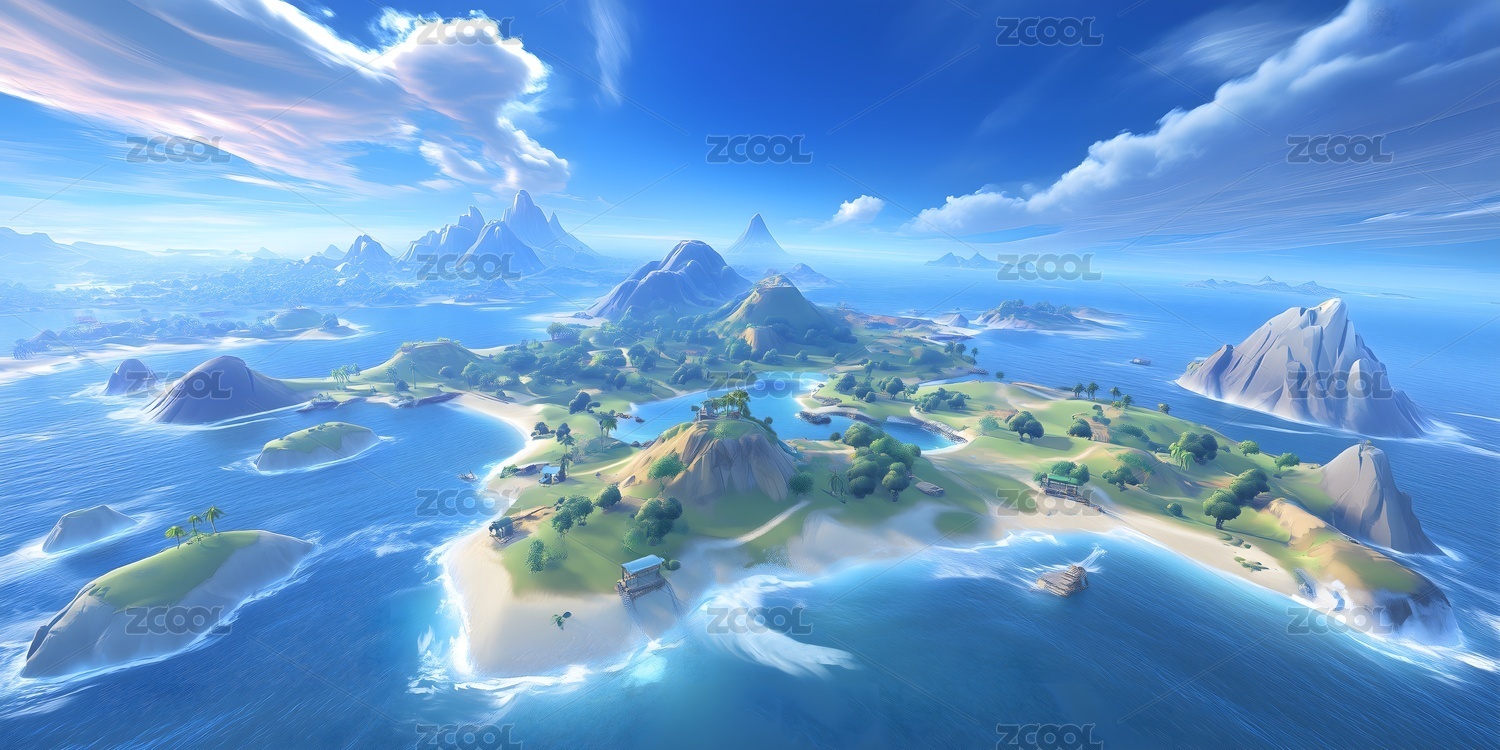 超现实岛屿山脉崎岖峡谷科技感外星地貌背景