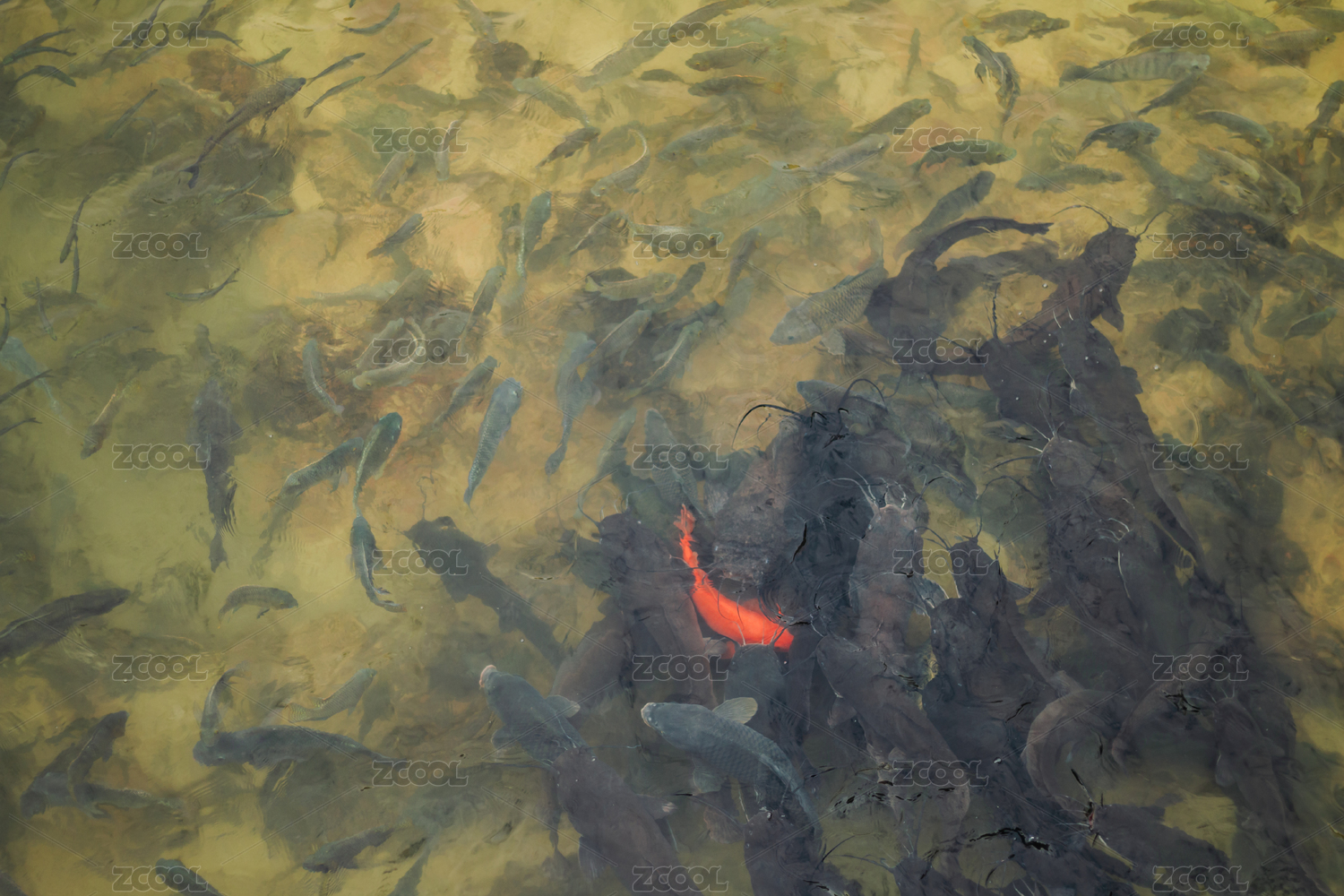 广东肇庆七星岩景区湖泊里的锦鲤鱼群
