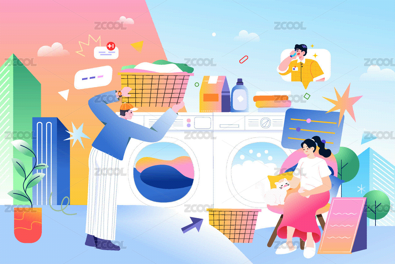 洗衣机家电矢量插画
