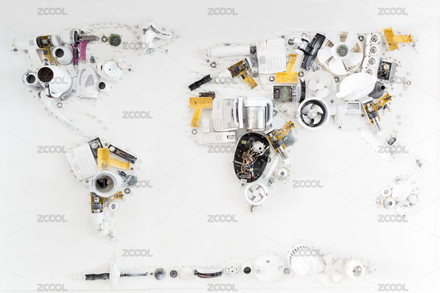 由家电零件组合成的世界地图