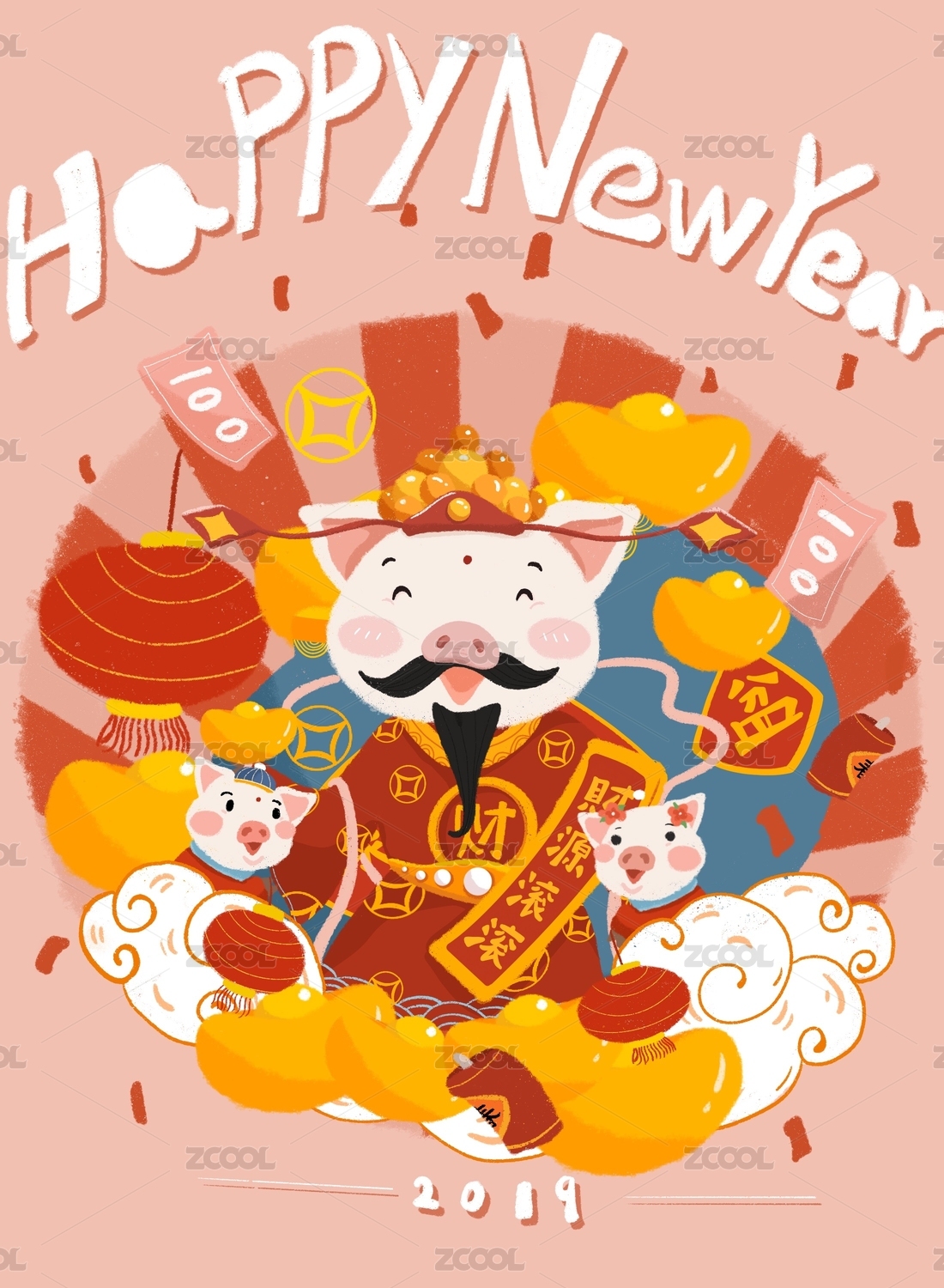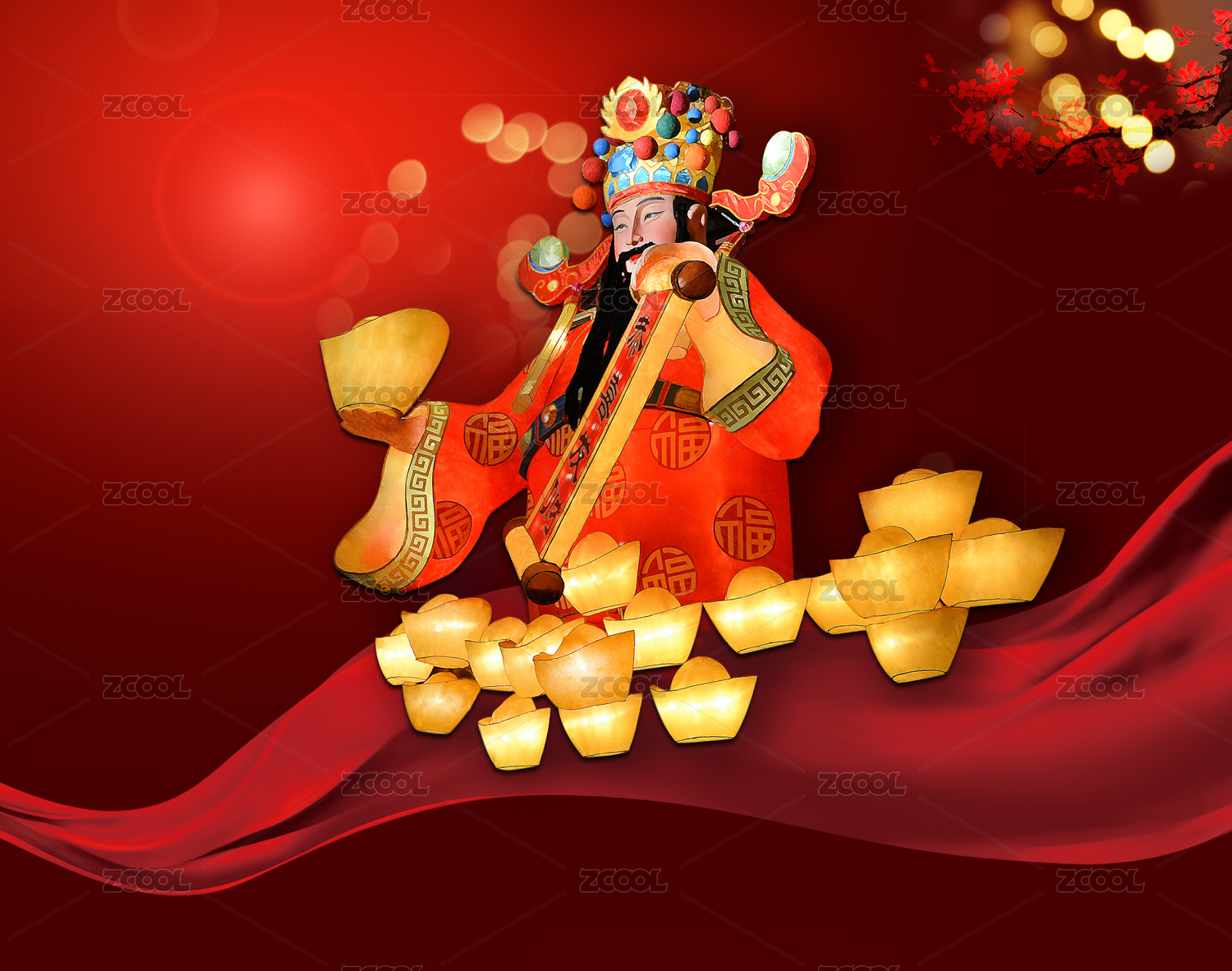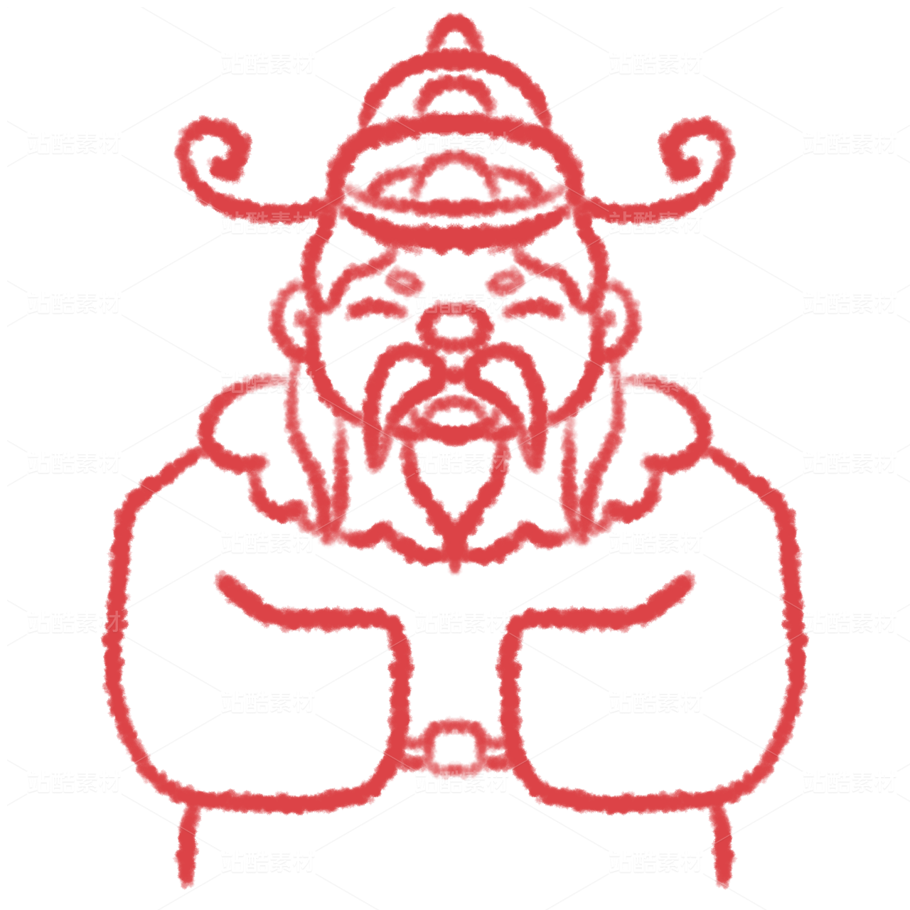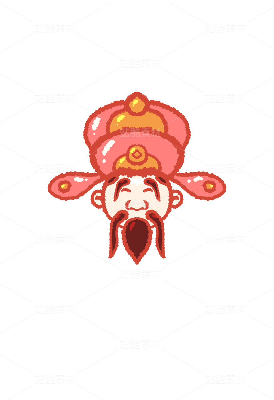 红色喜庆手绘国潮财神爷祝贺新春快乐插画