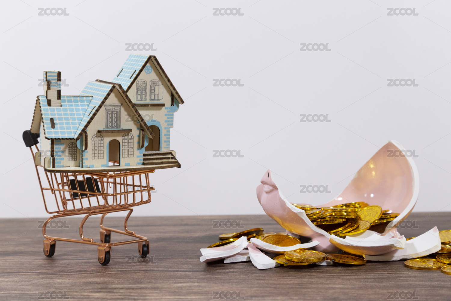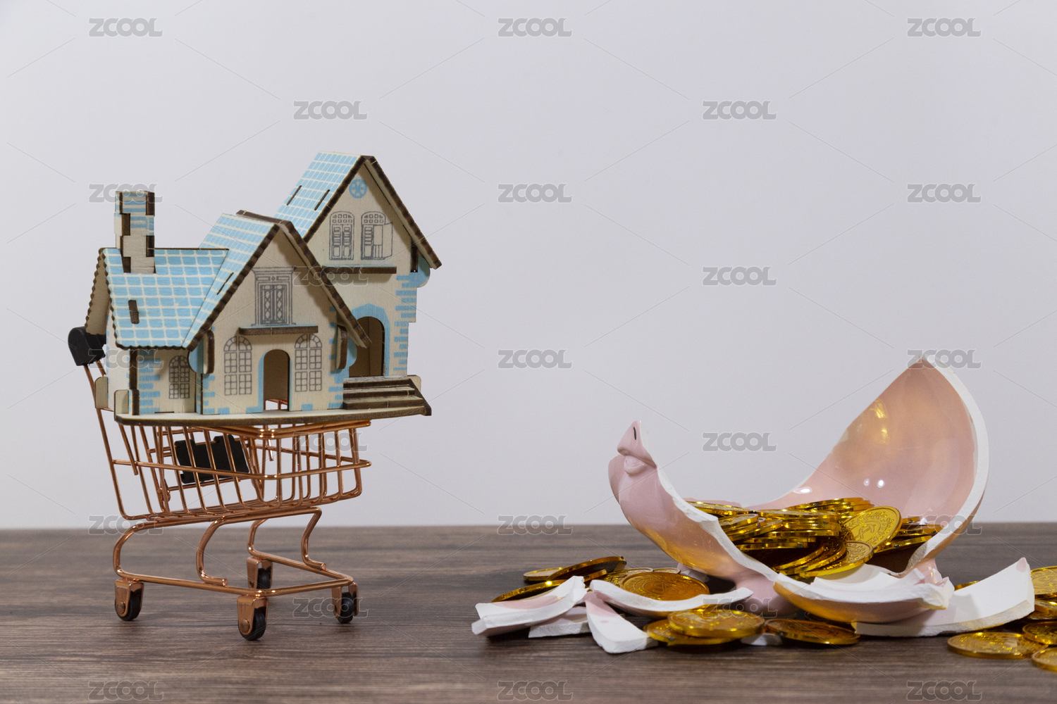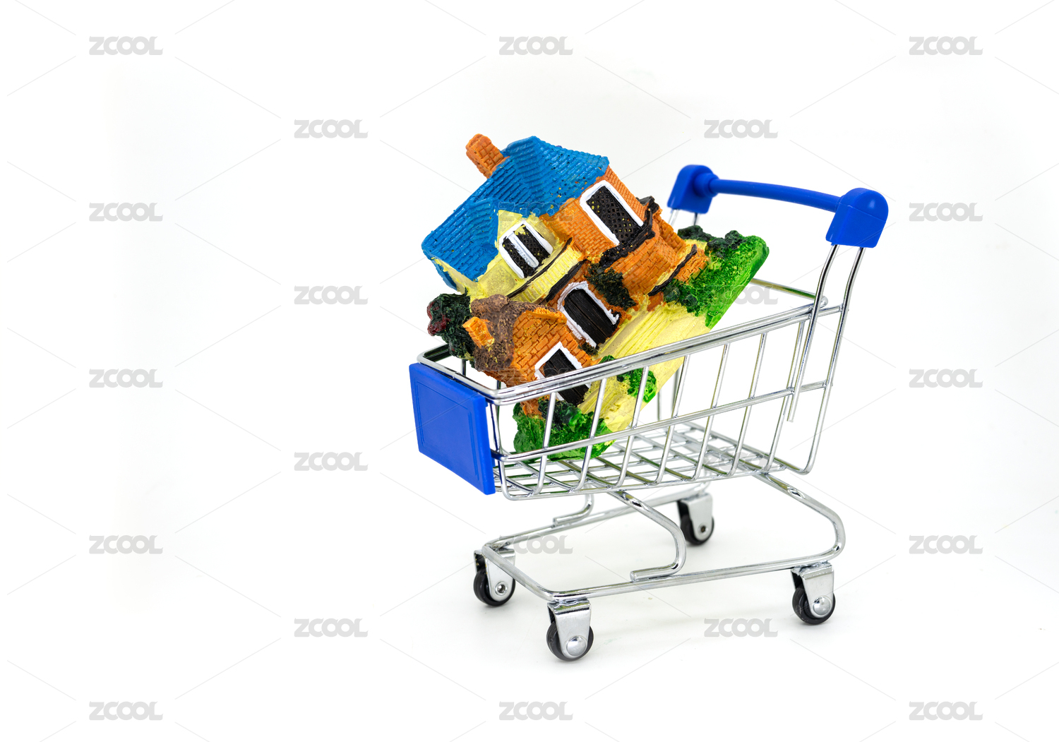 房地产购房房贷交房概念图片购物车里的房子