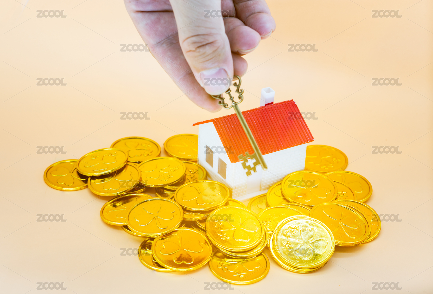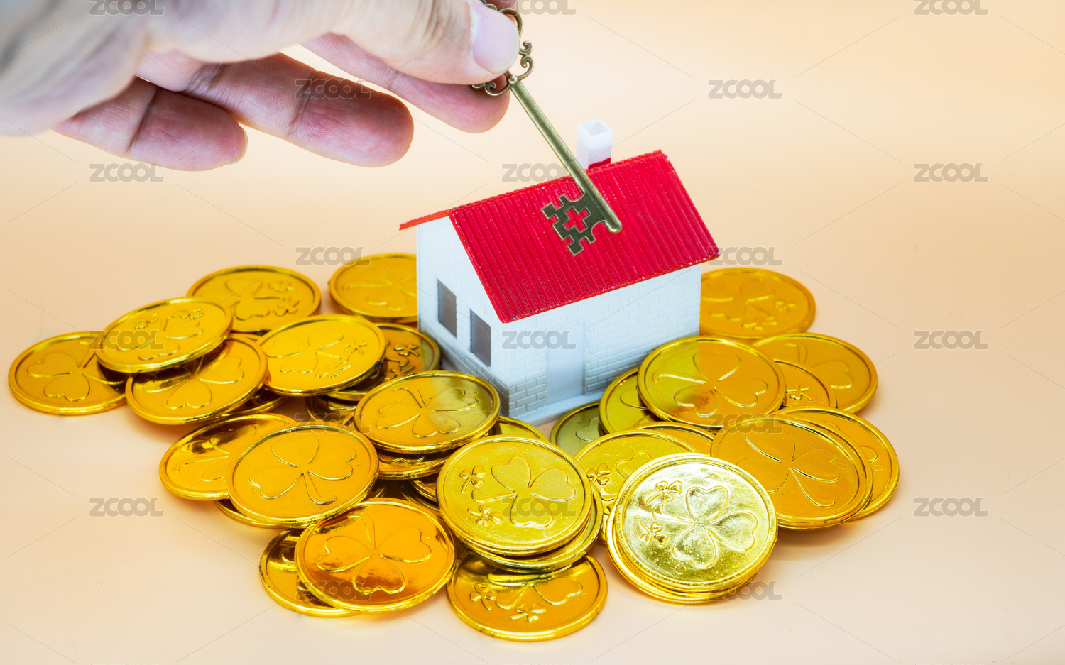 小房子模型和拿硬币购买的木偶