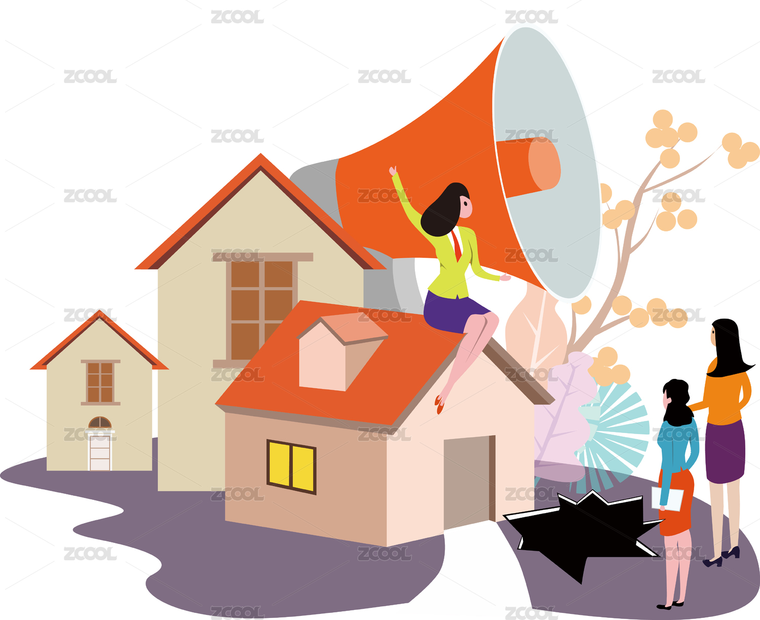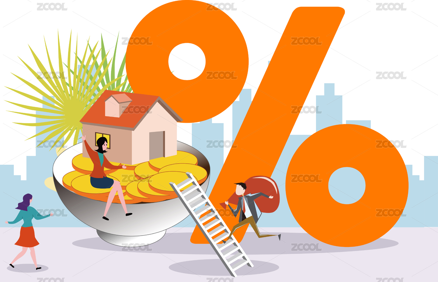 购房补贴房产概念插画